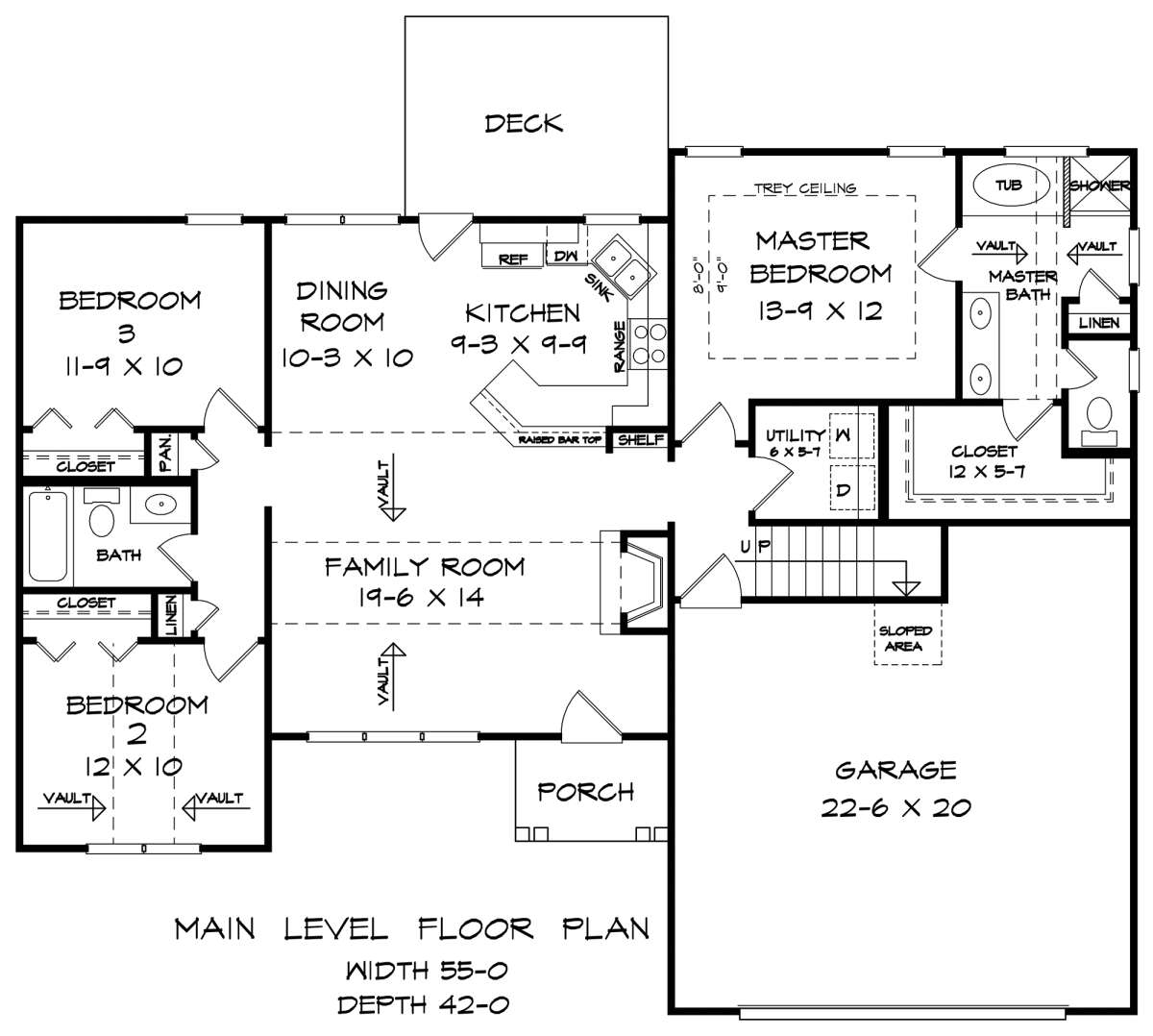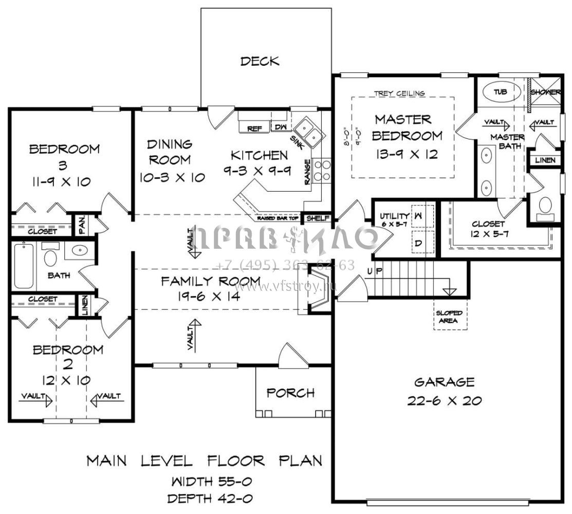Проект одноэтажного дома с гаражом на две машины в стиле Ранчо S5-123 (6082-00061)