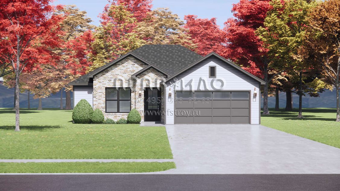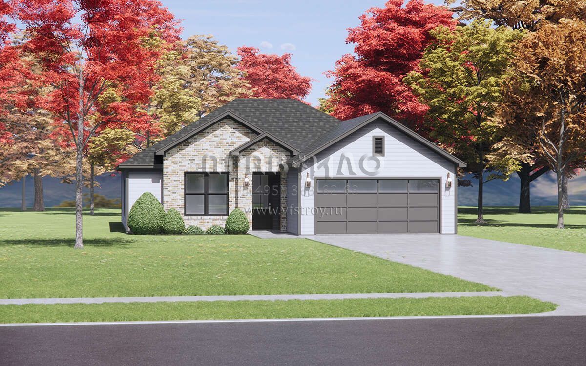 Проект одноэтажного дома с гаражом на две машины в стиле Ранчо S5-123 (7983-00035)