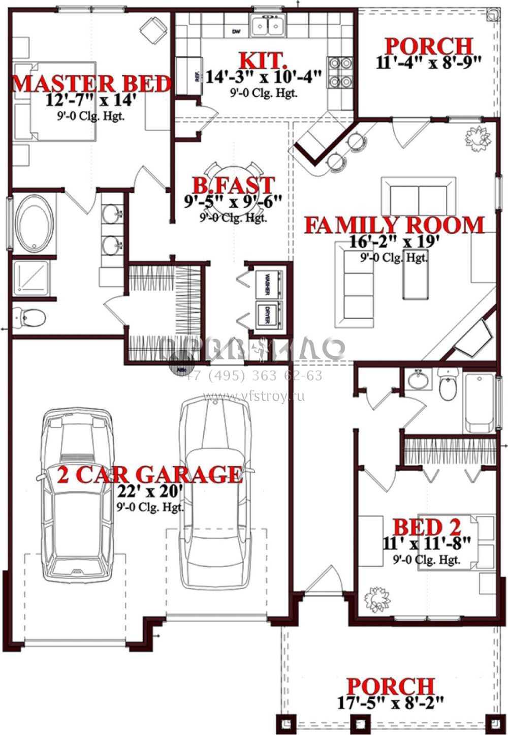 Проект одноэтажного дома с гаражом на две машины в стиле Ранчо S5-124 (1070-00124)