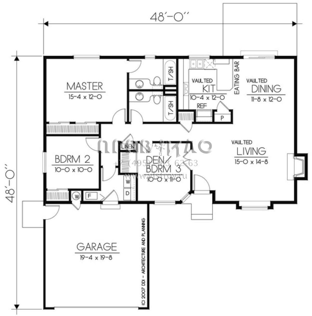 Проект одноэтажного дома с гаражом на две машины в стиле Ранчо S5-124 (692-00230)