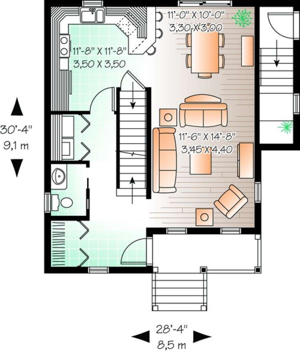 S5-125 (034-00471) Это иностранный проект, для которого требуется адаптация под нормы, действующие в Российской Федерации. Вы видите проект дома в стиле Ранчо. В этом доме сочетаются черты сельской постройки и аскетичность лофта. Внутри жильцы смогут проводить время с максимальным комфортом. Обратим внимание, что сейчас на планировках все размеры представлены в футах. Для перевода в метры вам необходимо значение в футах умножить на 0,3048.