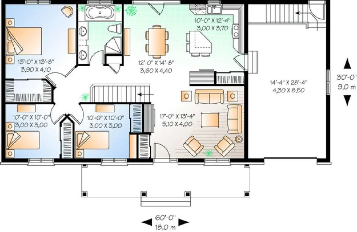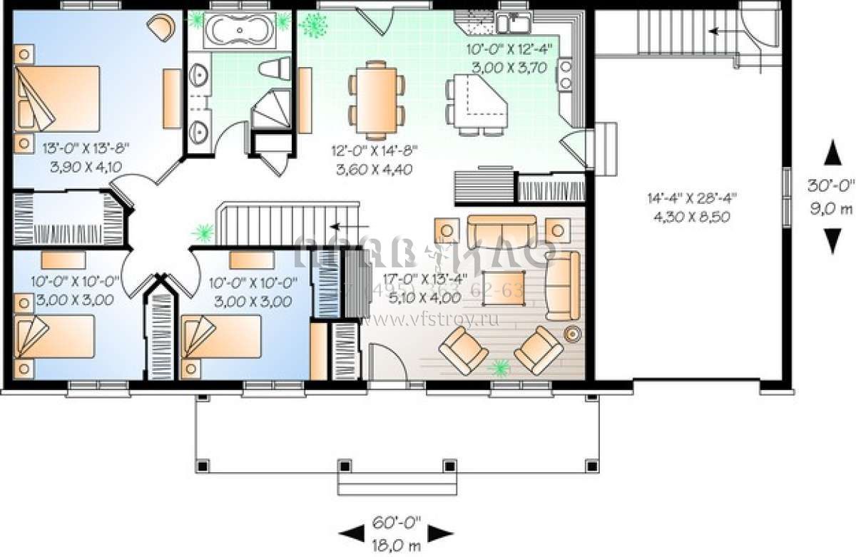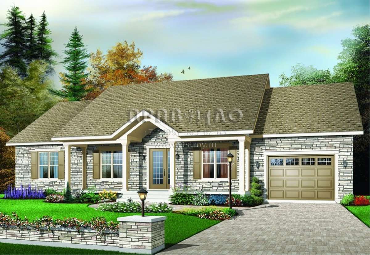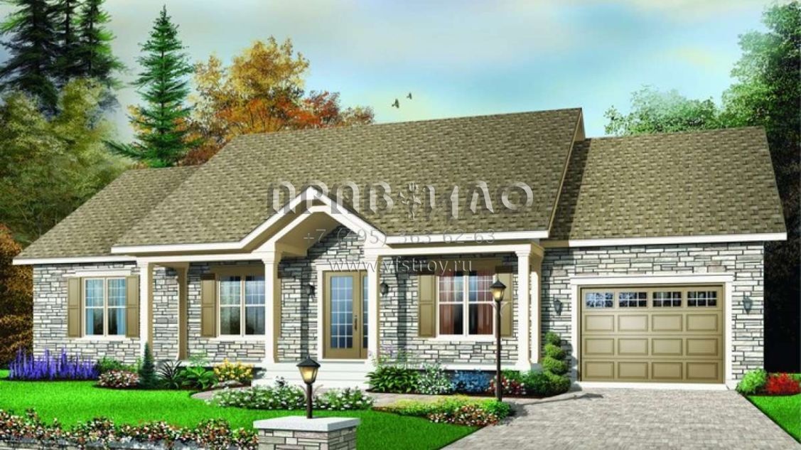 Проект одноэтажного дома с гаражом на одну машину в стиле Ранчо S5-125 (034-00659)