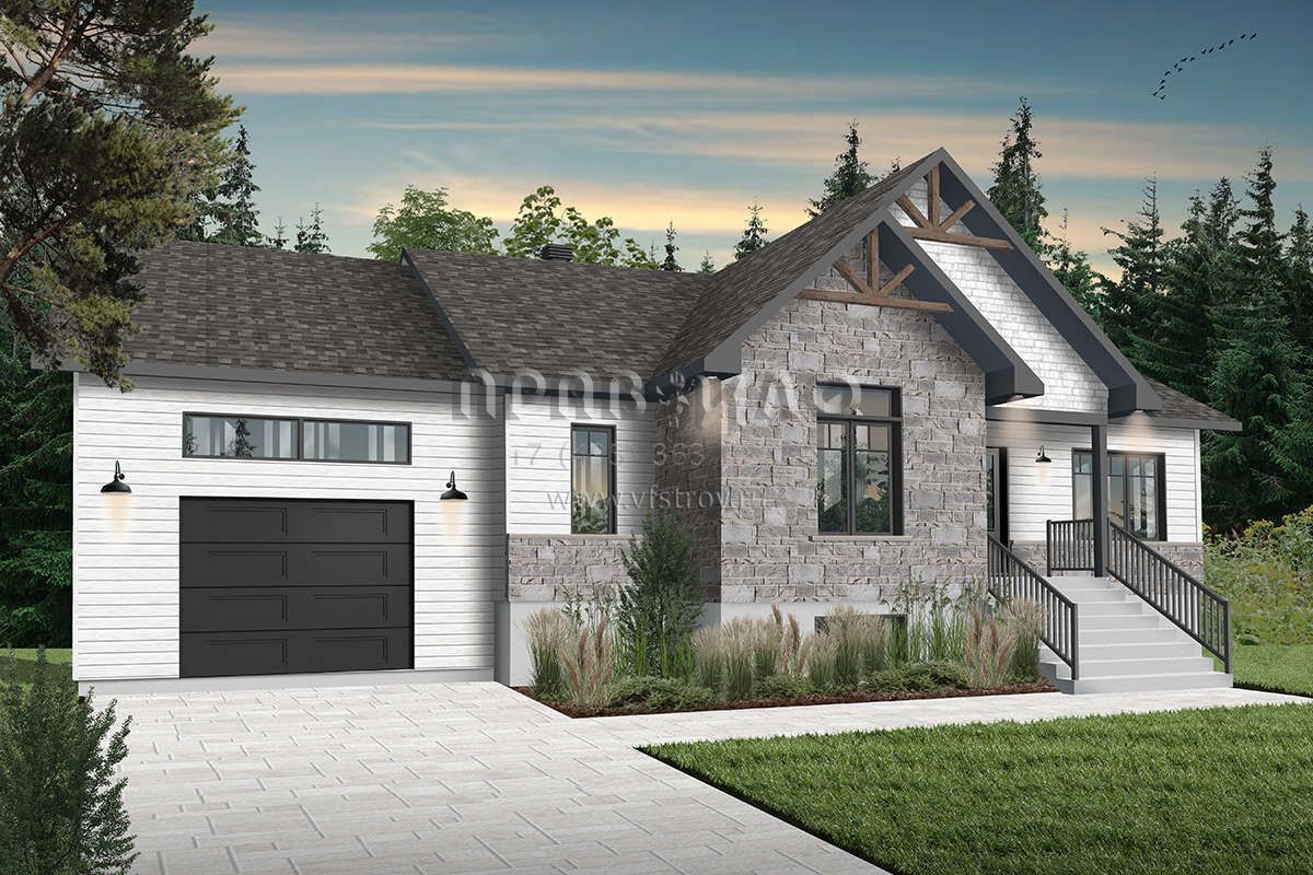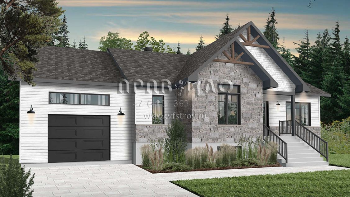 Проект одноэтажного дома с гаражом на одну машину в современном стиле S5-125 (034-01231)