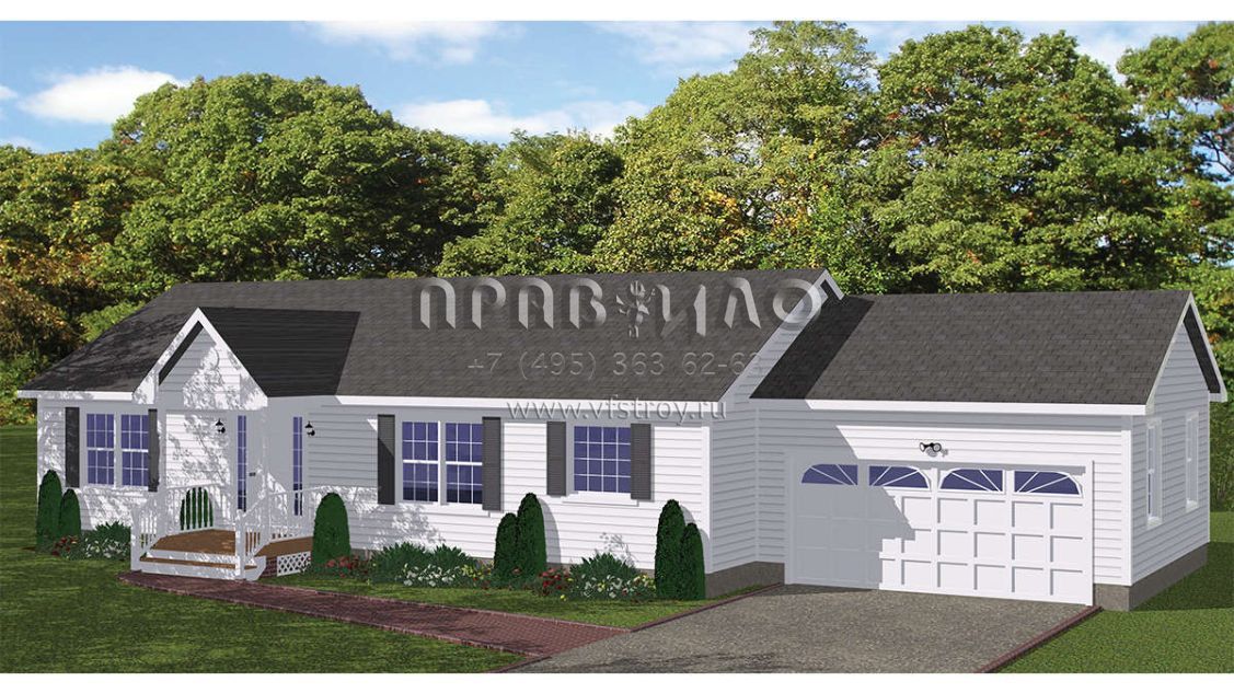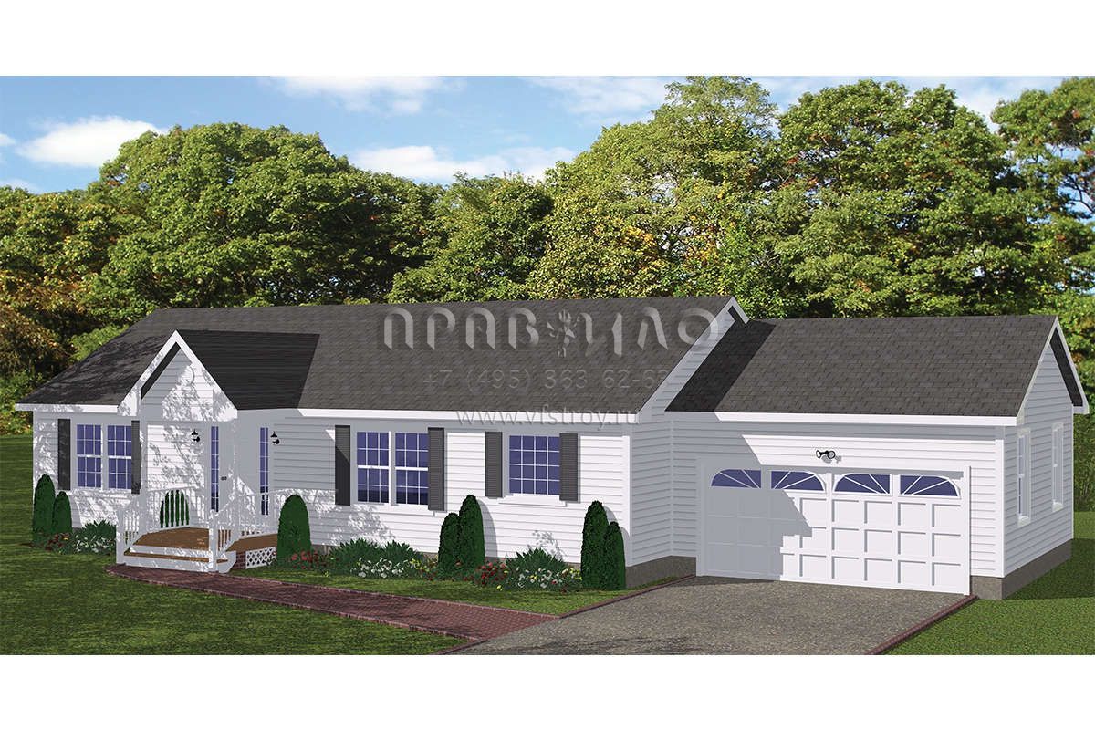 Проект одноэтажного дома с гаражом на две машины в стиле Ранчо S5-125 (526-00054)