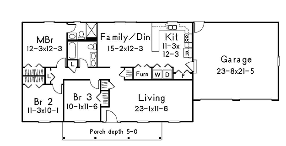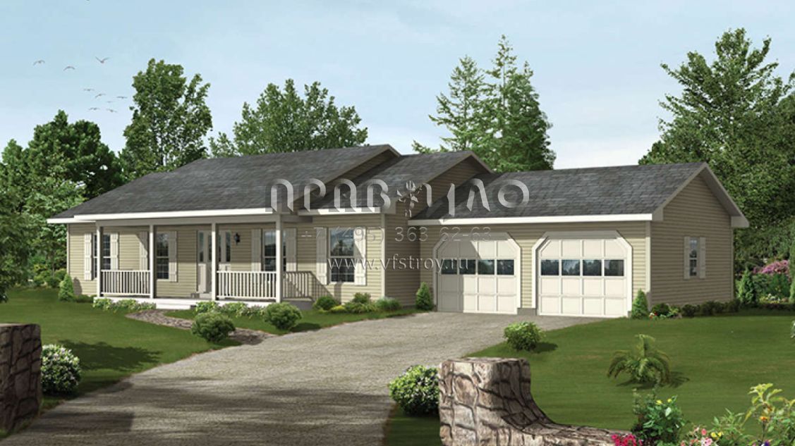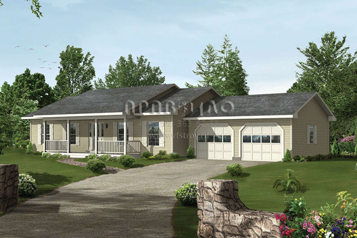 Проект одноэтажного дома с гаражом на две машины в стиле Ранчо S5-125 (5633-00225)
