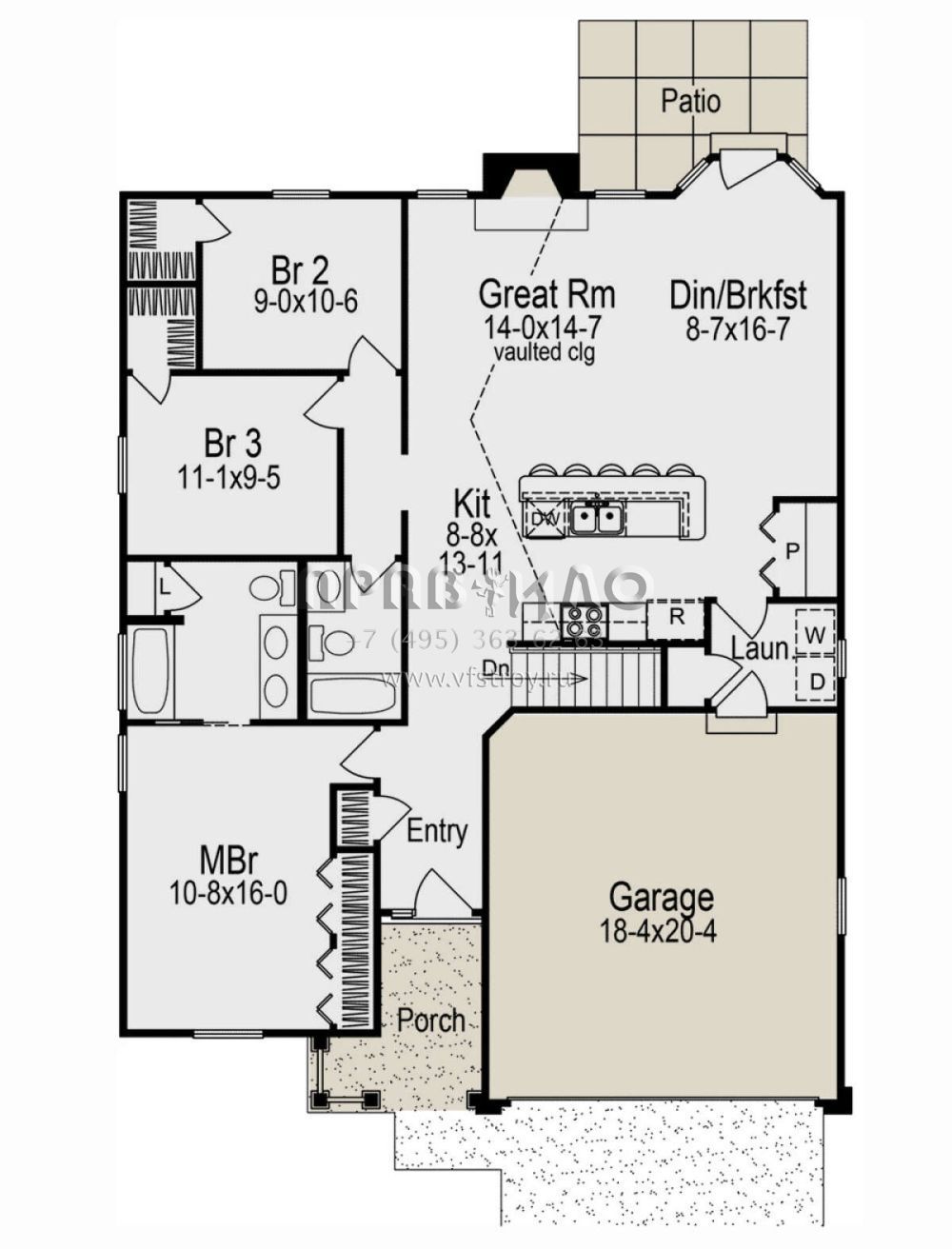 Проект одноэтажного дома с гаражом на две машины в стиле Ранчо S5-125 (5633-00431)