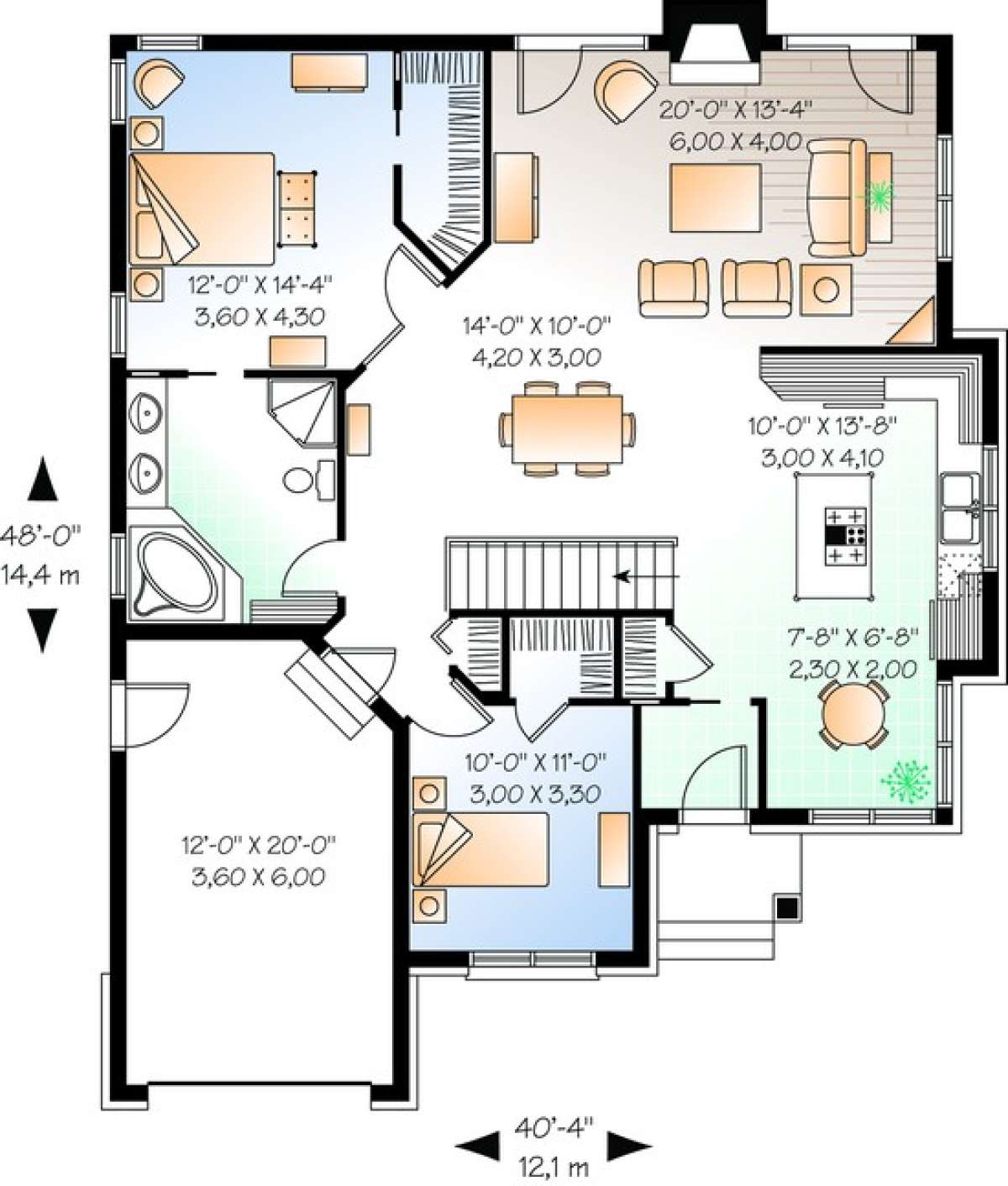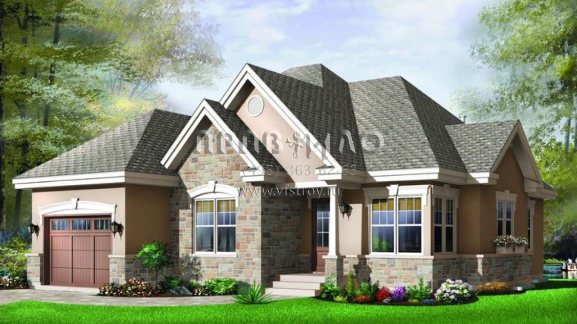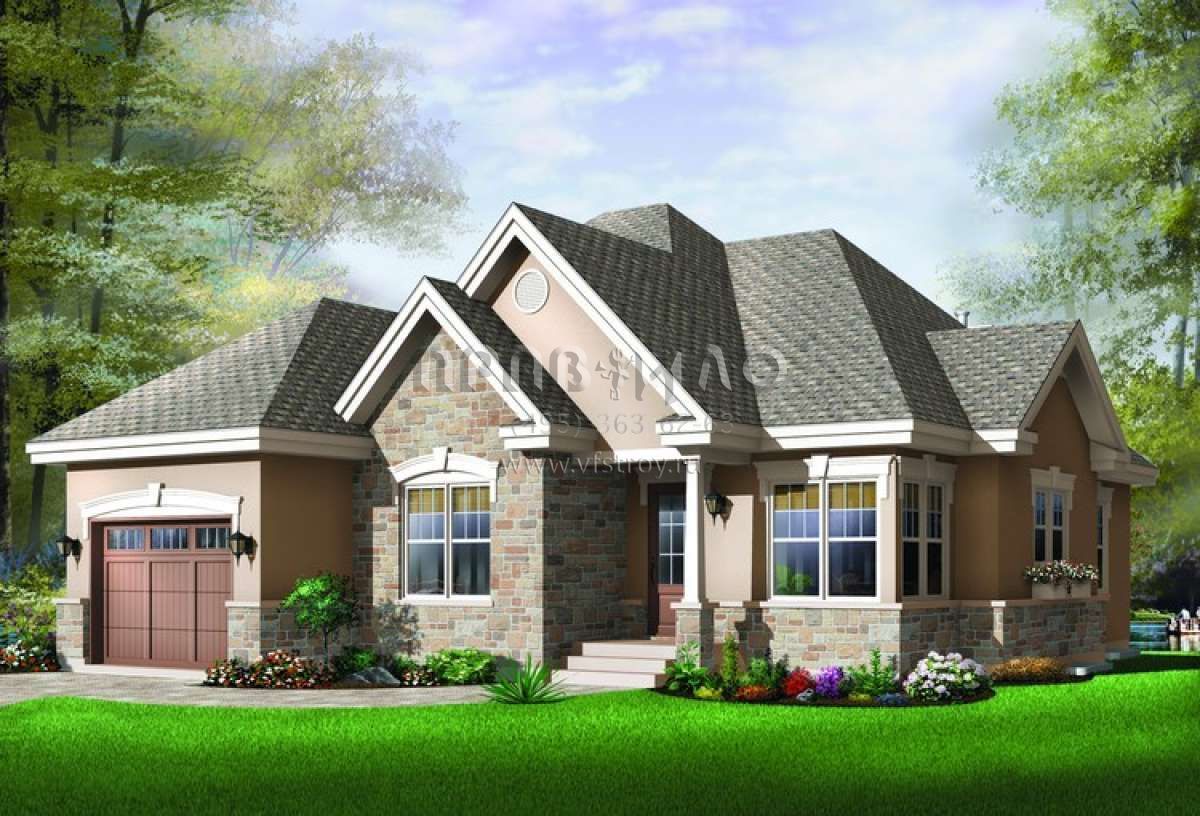 Проект одноэтажного дома с гаражом на одну машину в английском стиле S5-126 (034-00652)
