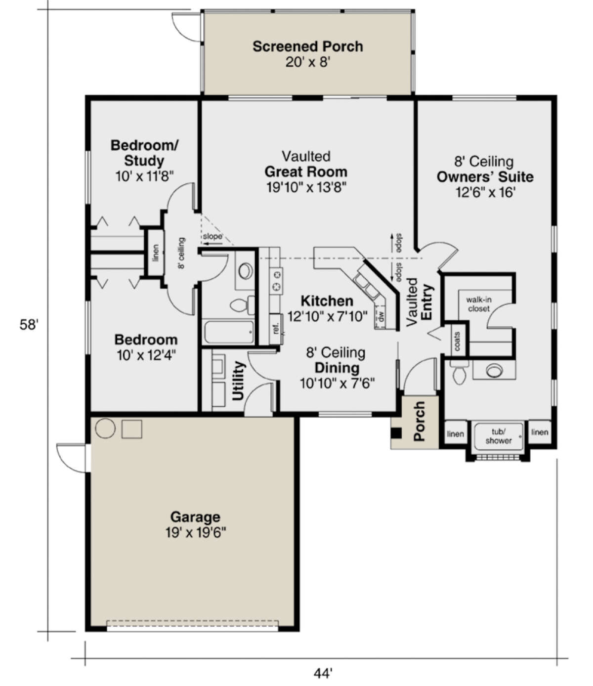 Проект одноэтажного дома с гаражом на две машины в прибрежном стиле S5-126 (035-00122)