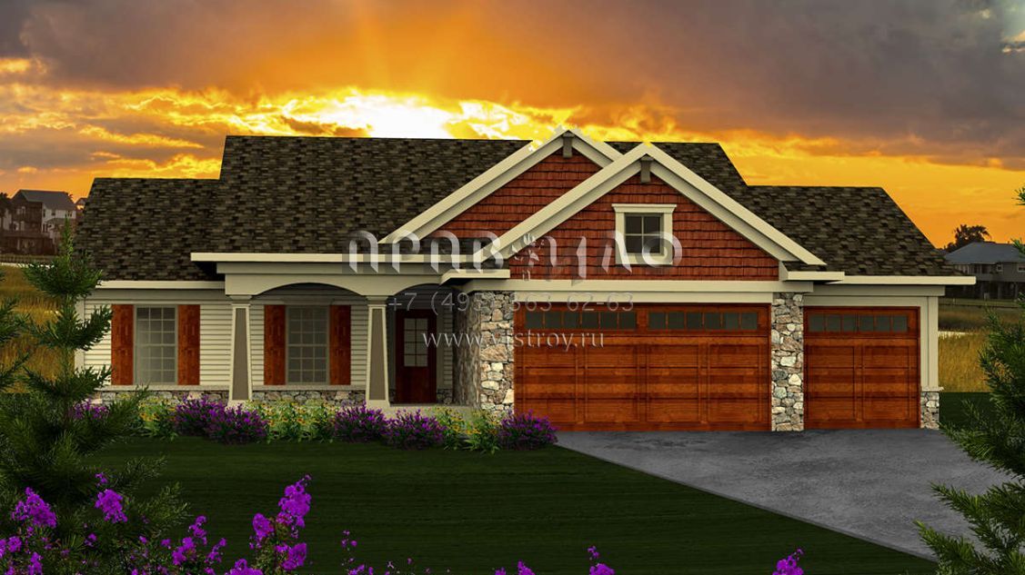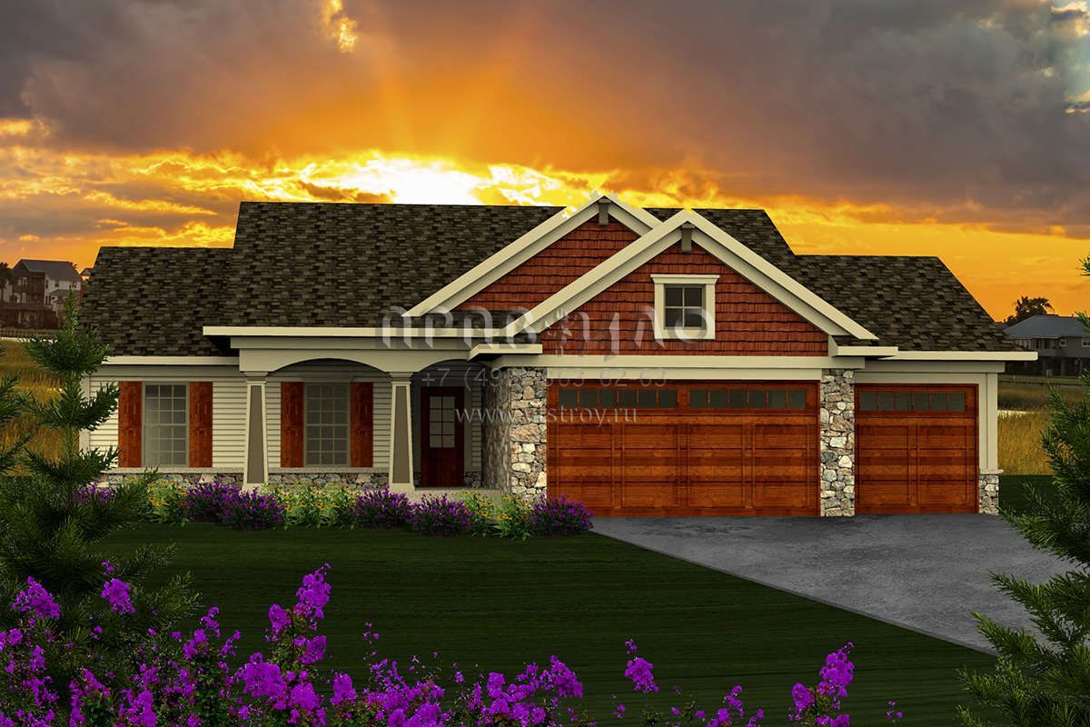 Проект одноэтажного дома с гаражом на три и более машин в американском стиле S5-126 (1020-00135)