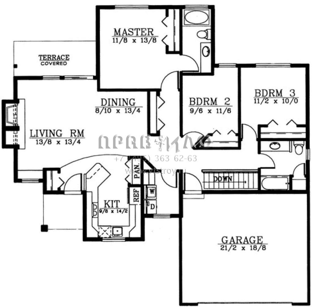 S5-126 (692-00109) Это иностранный проект, для которого требуется адаптация под нормы, действующие в Российской Федерации. Вы видите проект дома в стиле Ранчо. В этом доме сочетаются черты сельской постройки и аскетичность лофта. Внутри жильцы смогут проводить время с максимальным комфортом. Обратим внимание, что сейчас на планировках все размеры представлены в футах. Для перевода в метры вам необходимо значение в футах умножить на 0,3048.