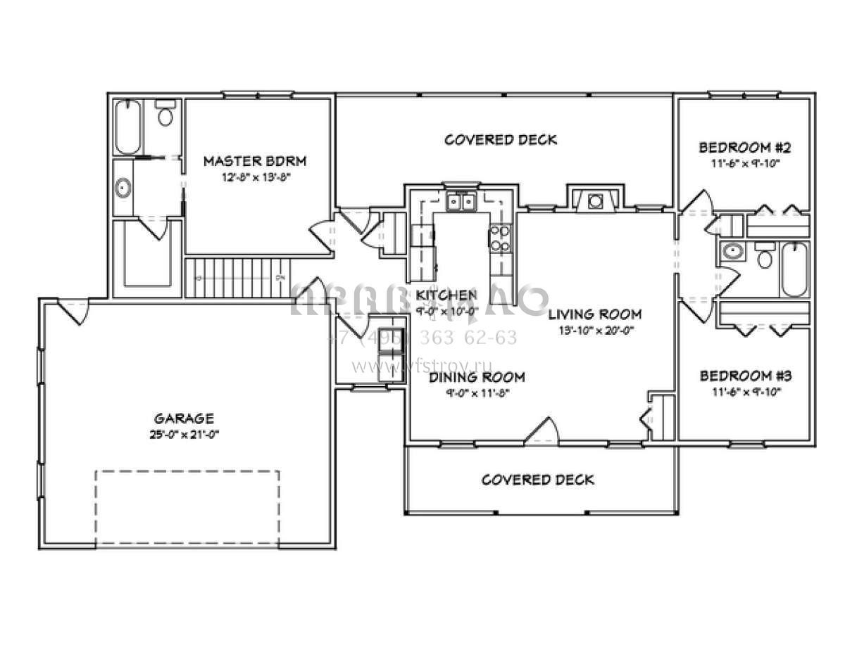 S5-126 (849-00017) Это иностранный проект, для которого требуется адаптация под нормы, действующие в Российской Федерации. Вы видите проект дома в стиле Ранчо. В этом доме сочетаются черты сельской постройки и аскетичность лофта. Внутри жильцы смогут проводить время с максимальным комфортом. Обратим внимание, что сейчас на планировках все размеры представлены в футах. Для перевода в метры вам необходимо значение в футах умножить на 0,3048.
