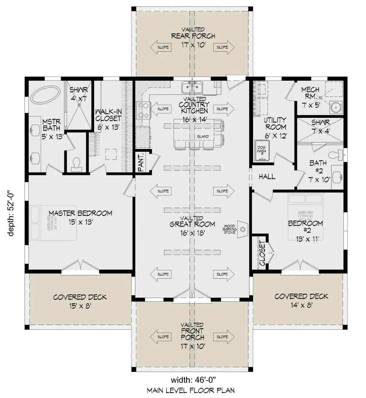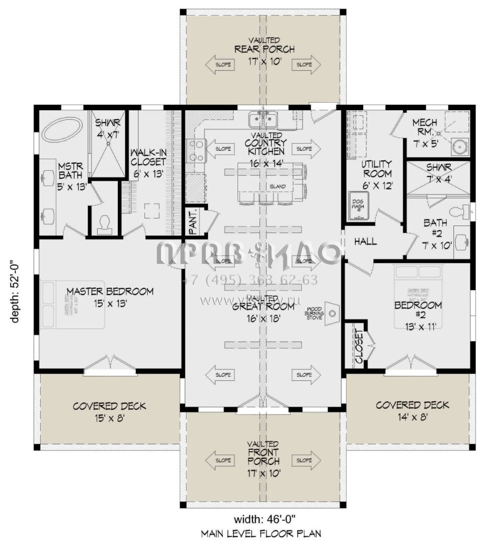 Проект одноэтажного дома без гаража в стиле Ранчо S5-126 (940-00357)