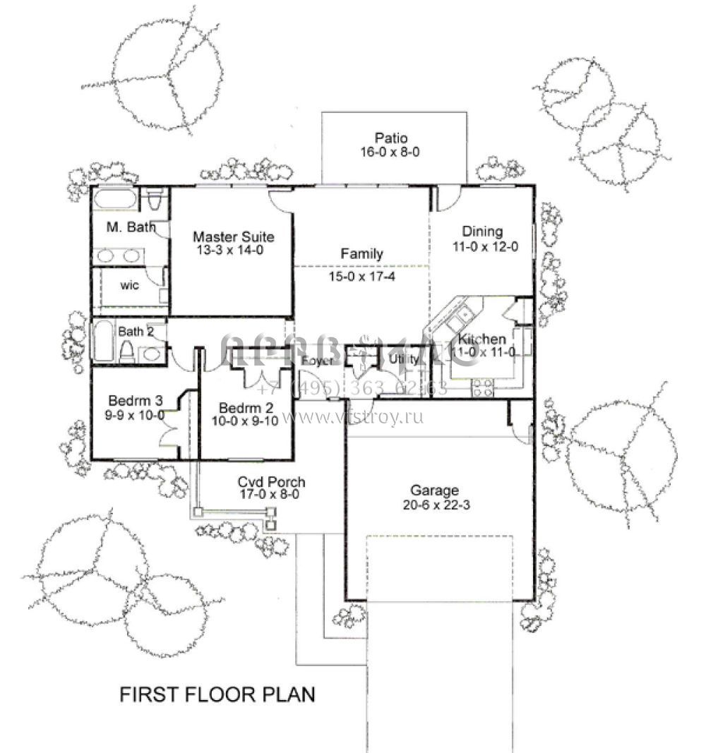 Проект одноэтажного дома с гаражом на две машины в стиле Ранчо S5-126 (9401-00039)