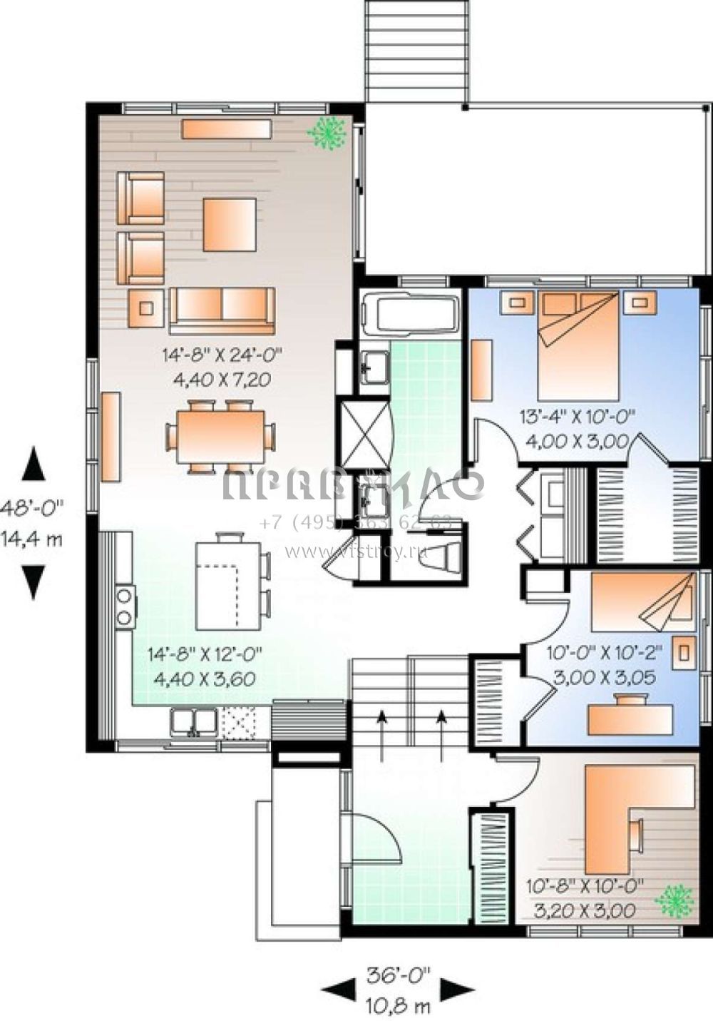 Поскольку этот проект разрабатывался иностранными архитекторами, для строительства дома требуется переработка проекта под действующие в России нормы. Данные визуализации проекта представлены для ознакомления с концепцией проекта. Проект разработан американским архитектурным бюро и представлен America's Best House Plans.