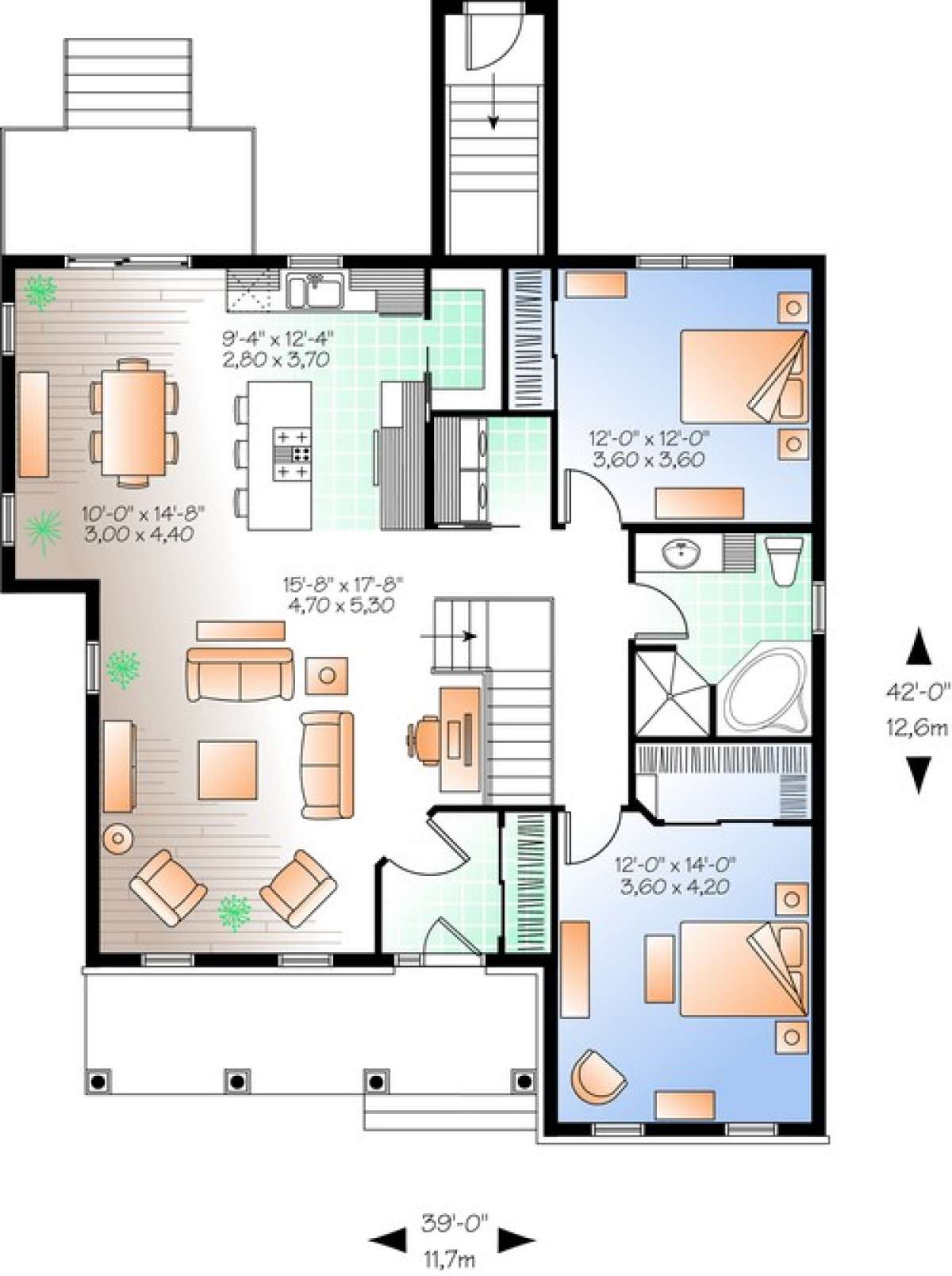 Проект одноэтажного дома без гаража в английском стиле S5-127 (034-01005)