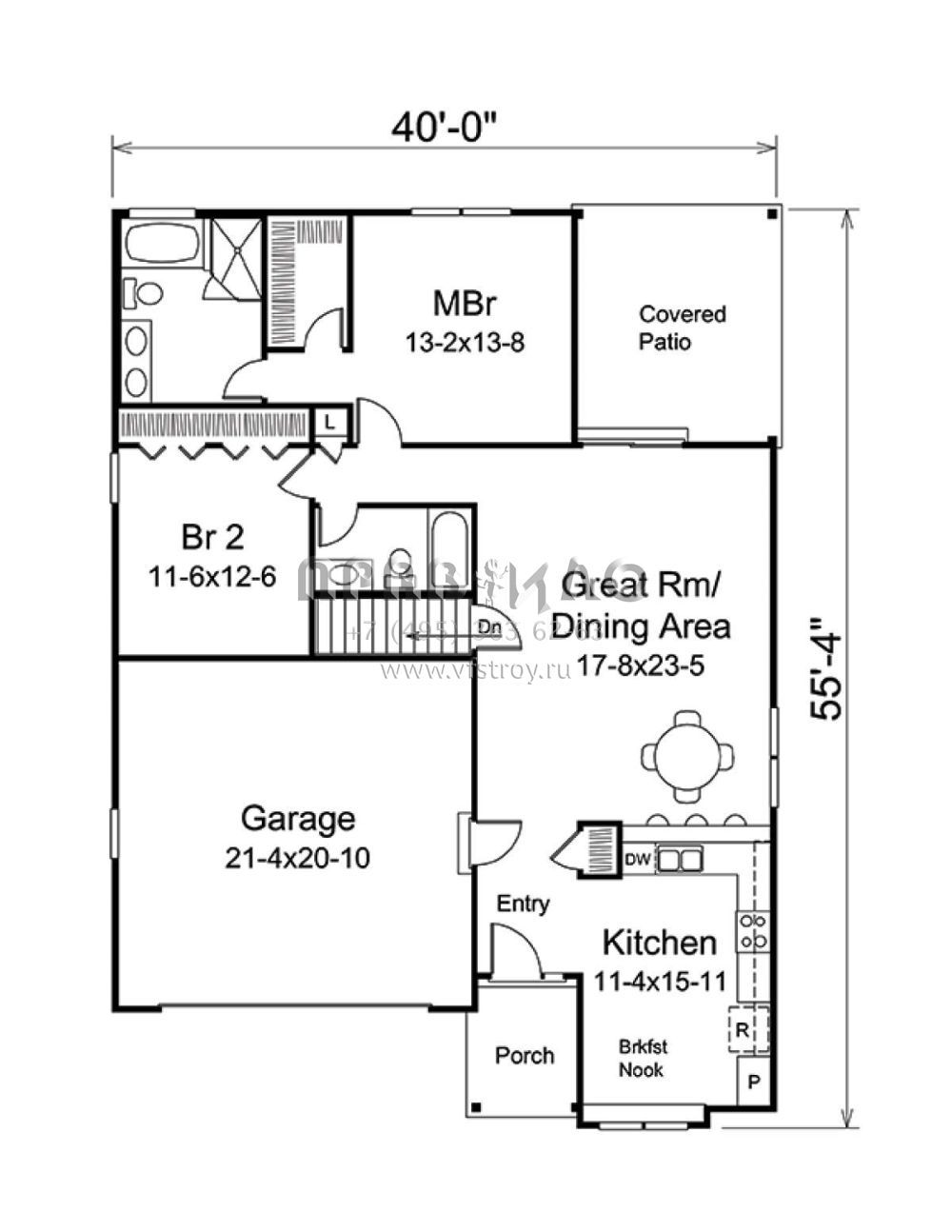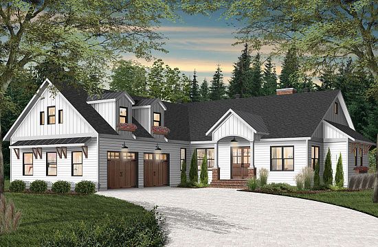 Проект одноэтажного дома с гаражом на две машины в стиле Ранчо S5-127 (5633-00293)