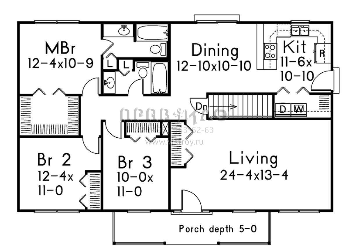 Проект одноэтажного дома без гаража в стиле Ранчо S5-127 (5633-00315)