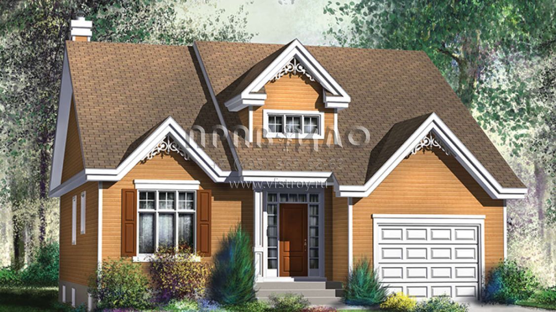 Проект одноэтажного дома с гаражом на одну машину в стиле Ранчо S5-127 (6146-00356)
