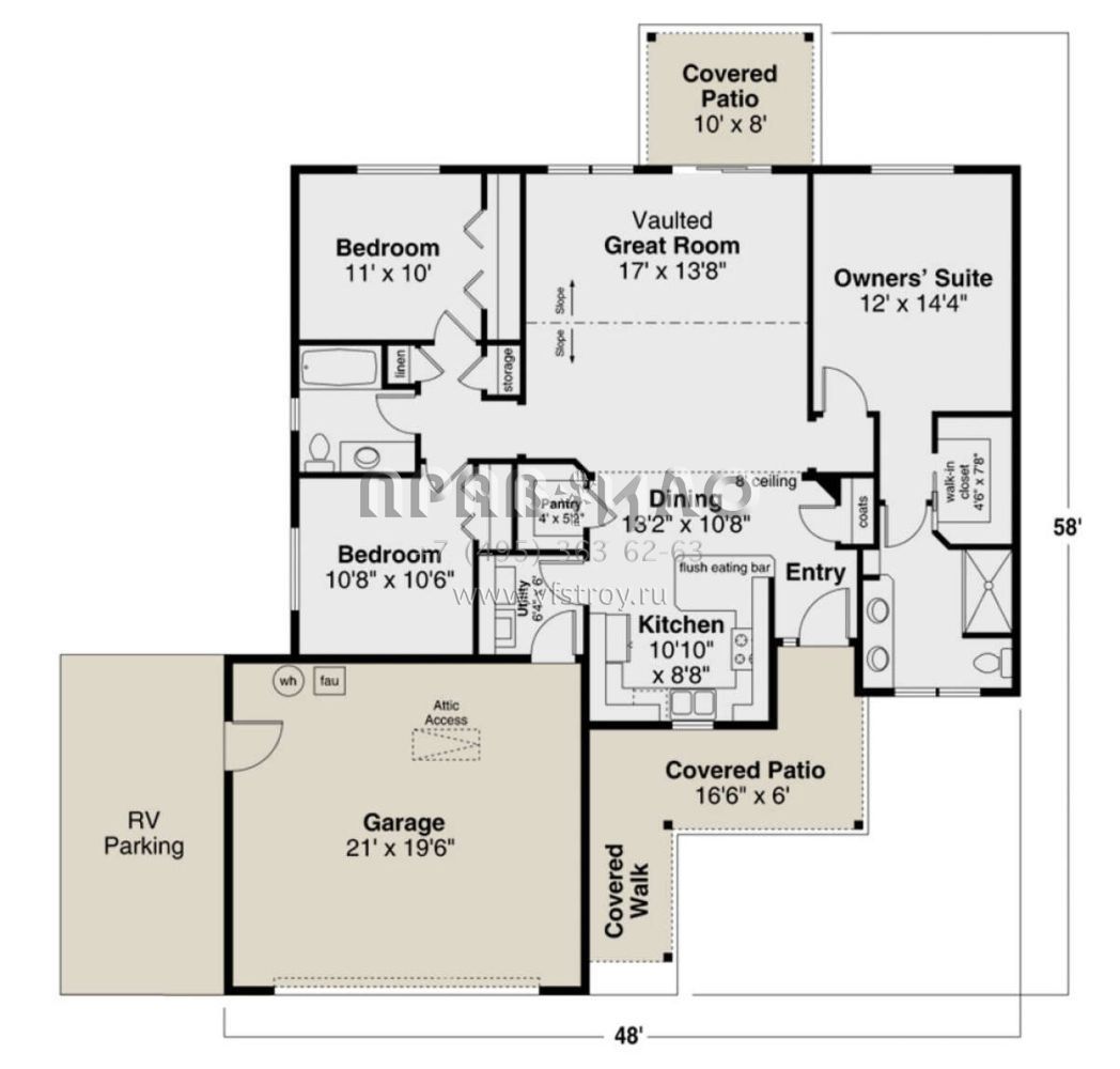 Проект одноэтажного дома с гаражом на две машины в стиле Ранчо S5-128 (035-00959)