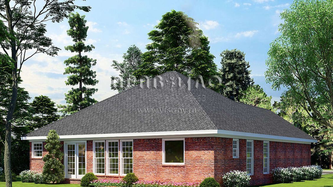Большая площадь участка позволяет выбрать одноэтажный проект дома, особенно если в семье есть пожилые люди, инвалиды или маленькие дети.