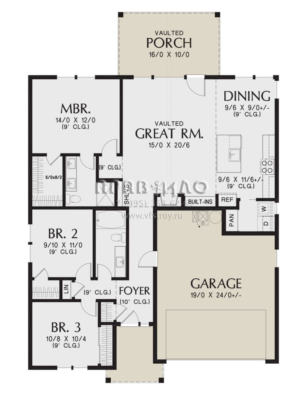 Проект одноэтажного дома с гаражом на две машины в современном стиле S5-128 (2559-00927)