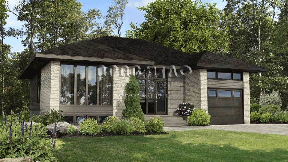 Проект одноэтажного дома с гаражом на одну машину в современном стиле S5-128 (6146-00491)