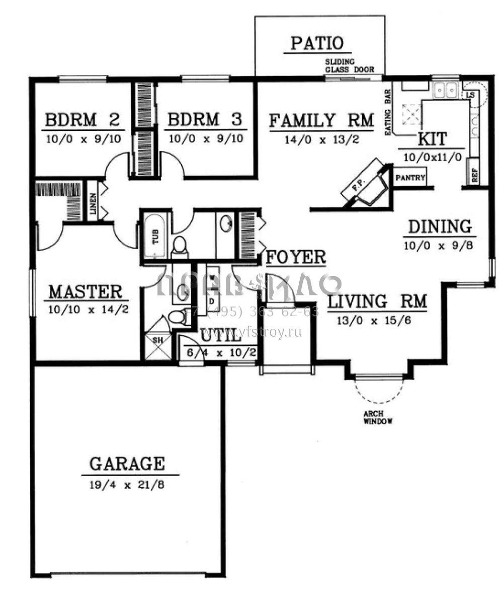 Проект одноэтажного дома с гаражом на две машины в стиле Ранчо S5-128 (692-00035)