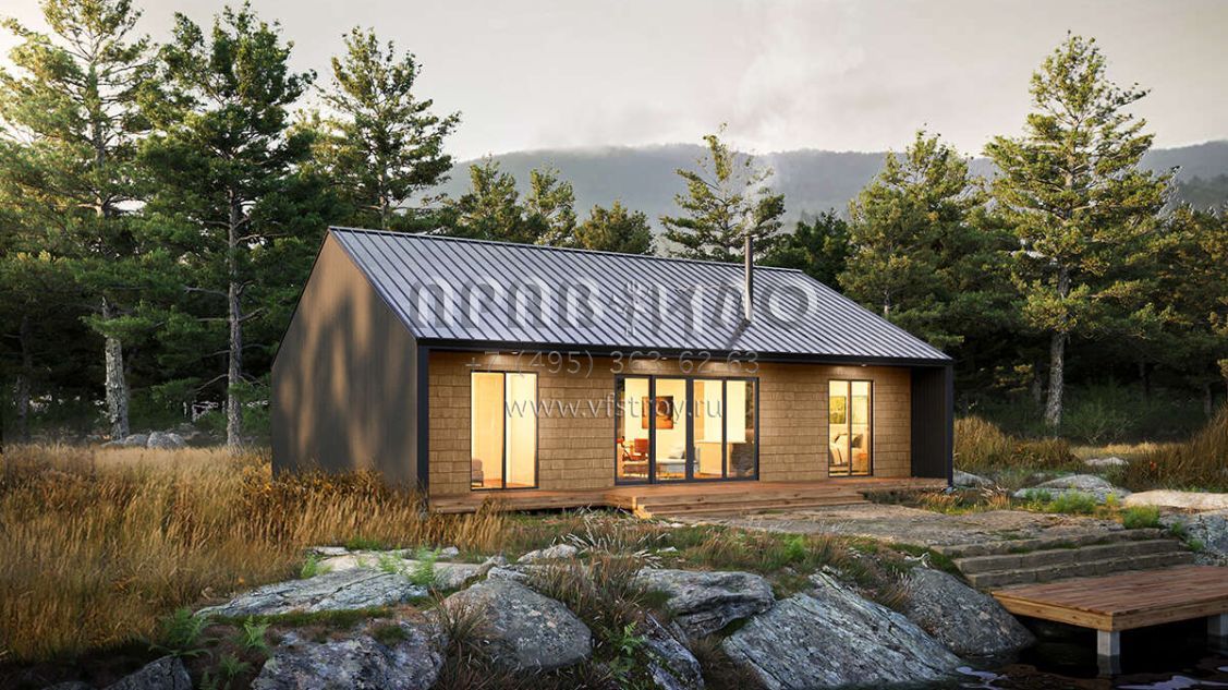Большая площадь участка позволяет выбрать одноэтажный проект дома, особенно если в семье есть пожилые люди, инвалиды или маленькие дети.