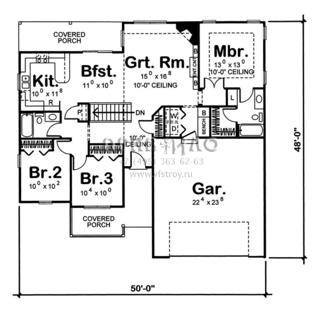 S5-128 (963-00056) Это иностранный проект, для которого требуется адаптация под нормы, действующие в Российской Федерации. Вы видите проект дома в стиле Ранчо. В этом доме сочетаются черты сельской постройки и аскетичность лофта. Внутри жильцы смогут проводить время с максимальным комфортом. Обратим внимание, что сейчас на планировках все размеры представлены в футах. Для перевода в метры вам необходимо значение в футах умножить на 0,3048.