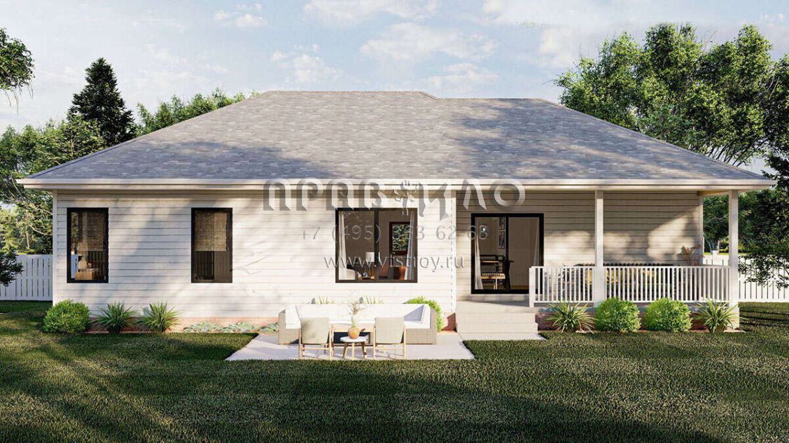 Большая площадь участка позволяет выбрать одноэтажный проект дома, особенно если в семье есть пожилые люди, инвалиды или маленькие дети.
