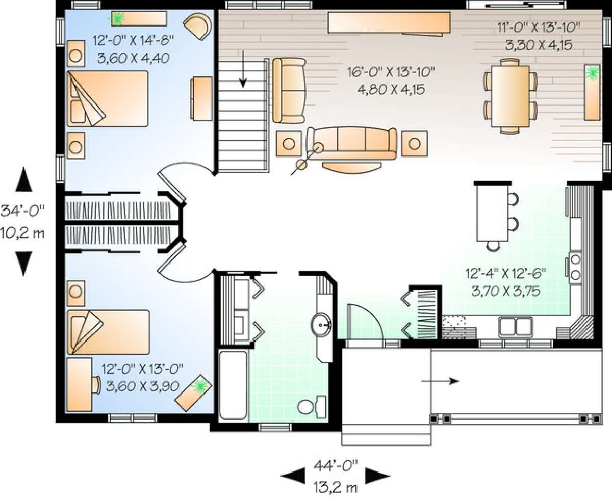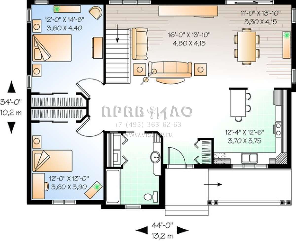 S5-129 (034-00274) Это иностранный проект, для которого требуется адаптация под нормы, действующие в Российской Федерации. Вы видите проект дома в стиле Ранчо. В этом доме сочетаются черты сельской постройки и аскетичность лофта. Внутри жильцы смогут проводить время с максимальным комфортом. Обратим внимание, что сейчас на планировках все размеры представлены в футах. Для перевода в метры вам необходимо значение в футах умножить на 0,3048.