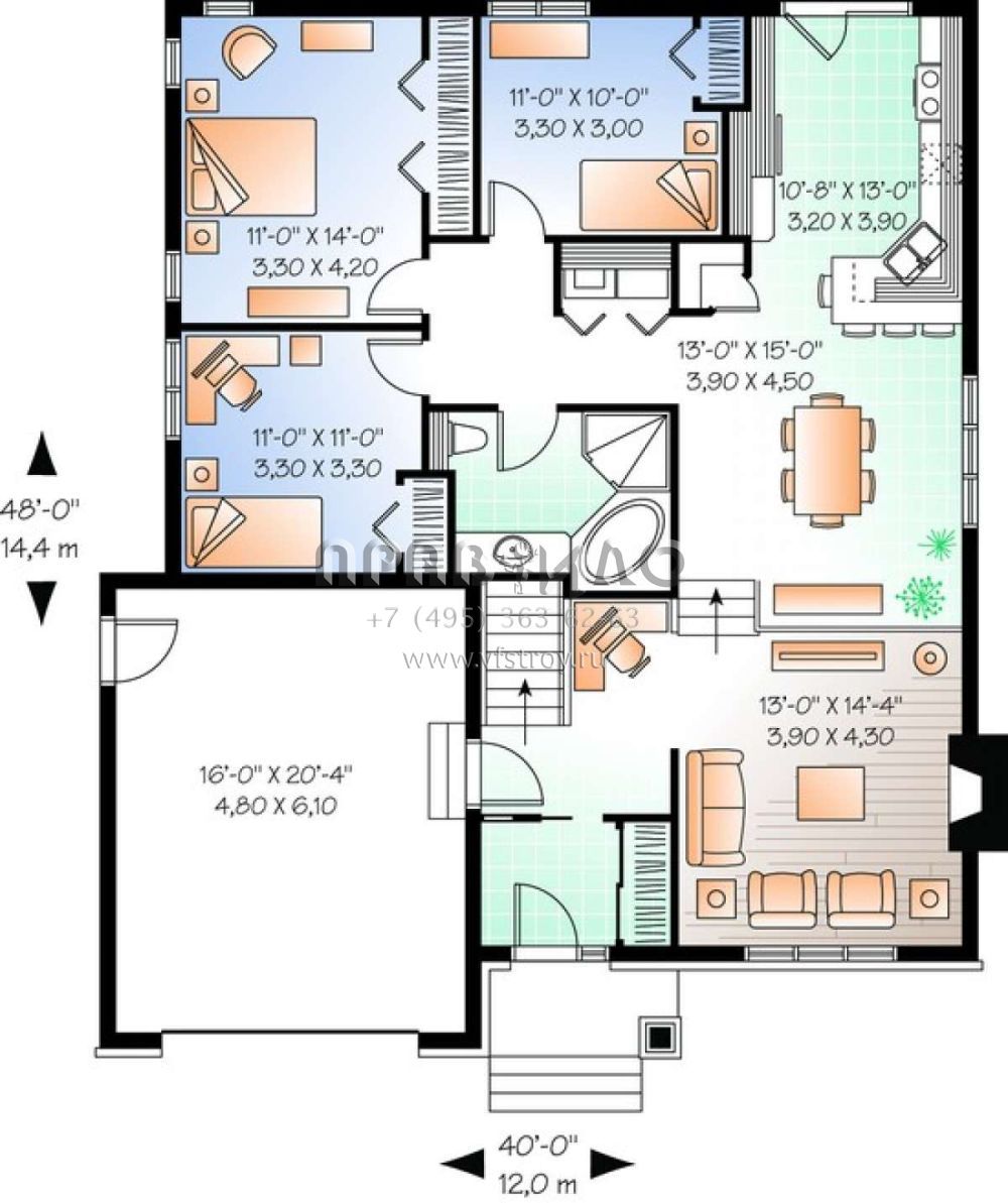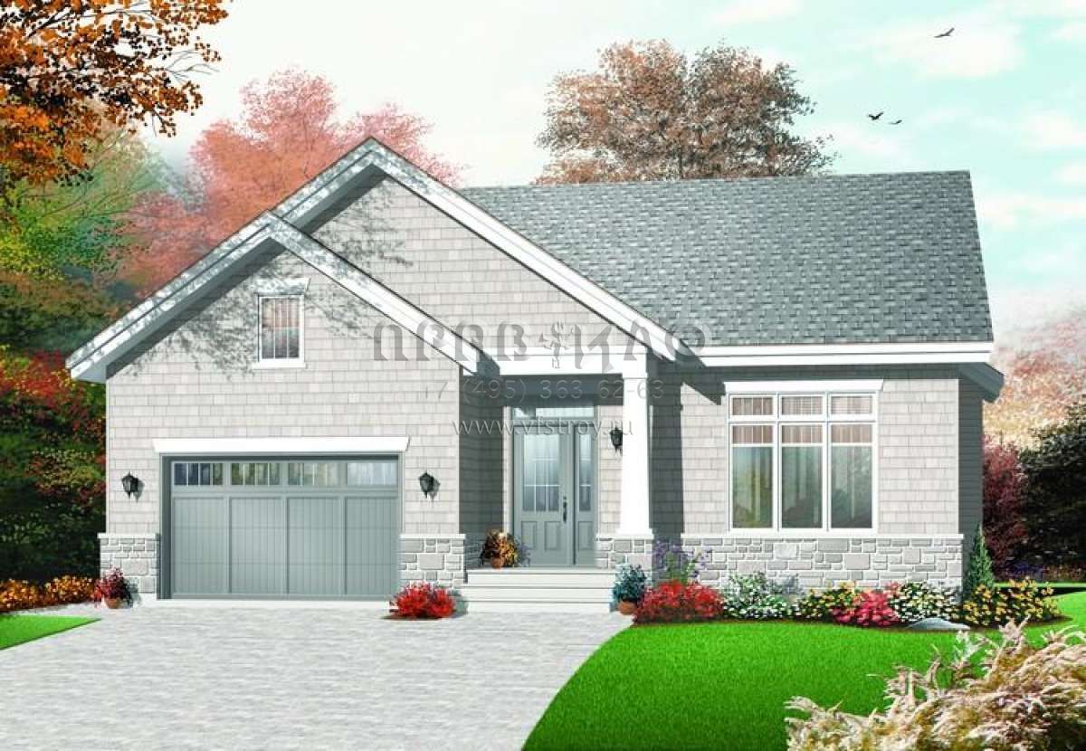 Проект одноэтажного дома с гаражом на одну машину в стиле Ранчо S5-129 (034-00683)