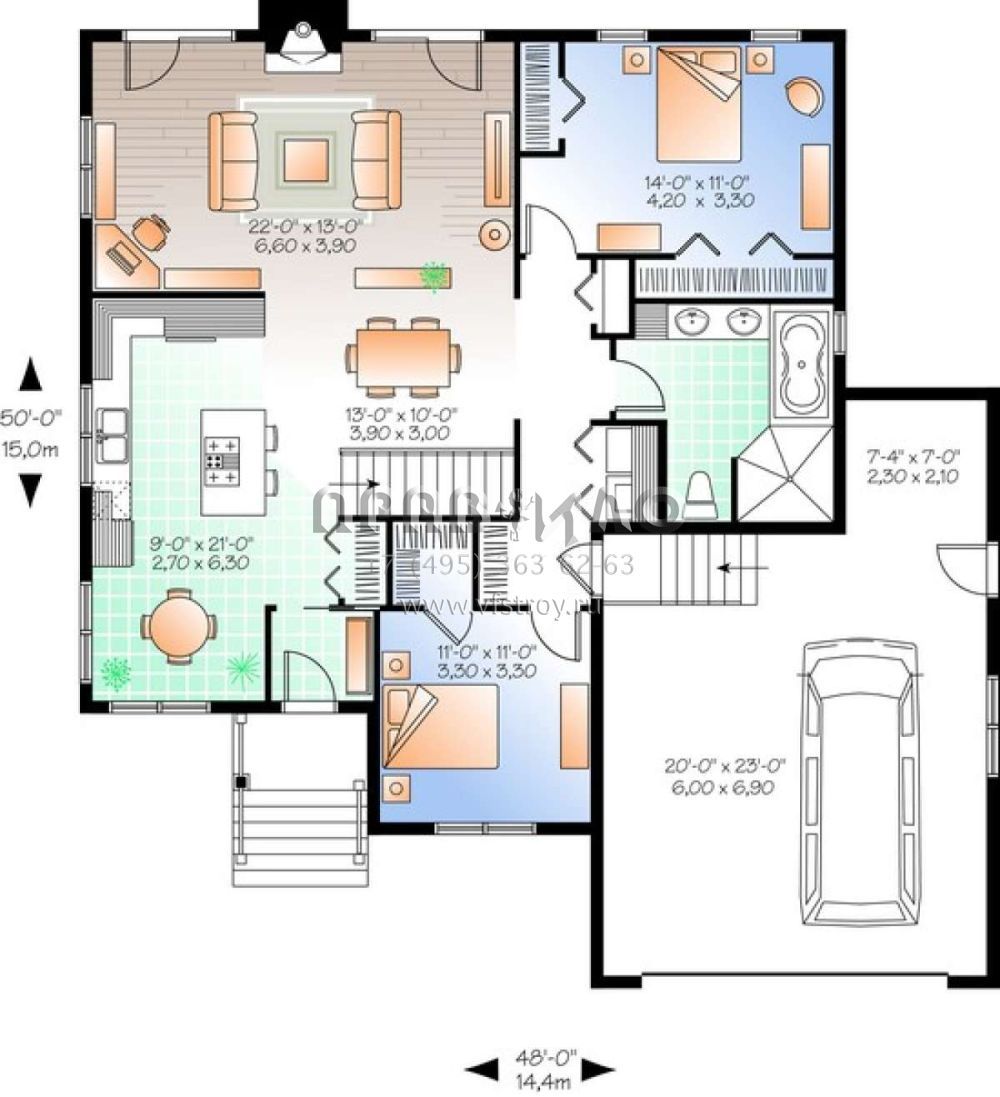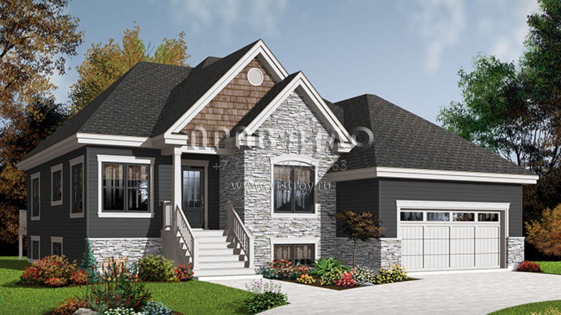Проект одноэтажного дома с гаражом на две машины в стиле Ранчо S5-129 (034-00970)