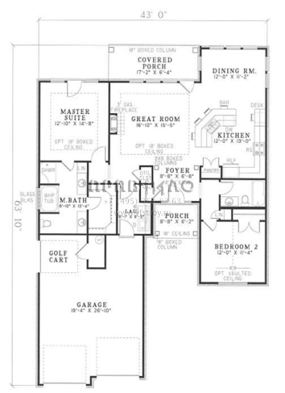 S5-129 (110-00162) Это иностранный проект, для которого требуется адаптация под нормы, действующие в Российской Федерации. Вы видите проект дома в стиле Ранчо. В этом доме сочетаются черты сельской постройки и аскетичность лофта. Внутри жильцы смогут проводить время с максимальным комфортом. Обратим внимание, что сейчас на планировках все размеры представлены в футах. Для перевода в метры вам необходимо значение в футах умножить на 0,3048.