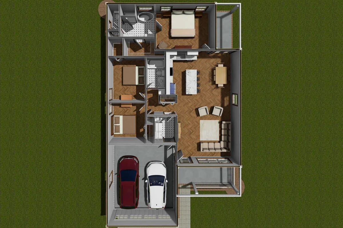 Проект одноэтажного дома с гаражом на две машины в современном стиле S5-129 (4848-00402)