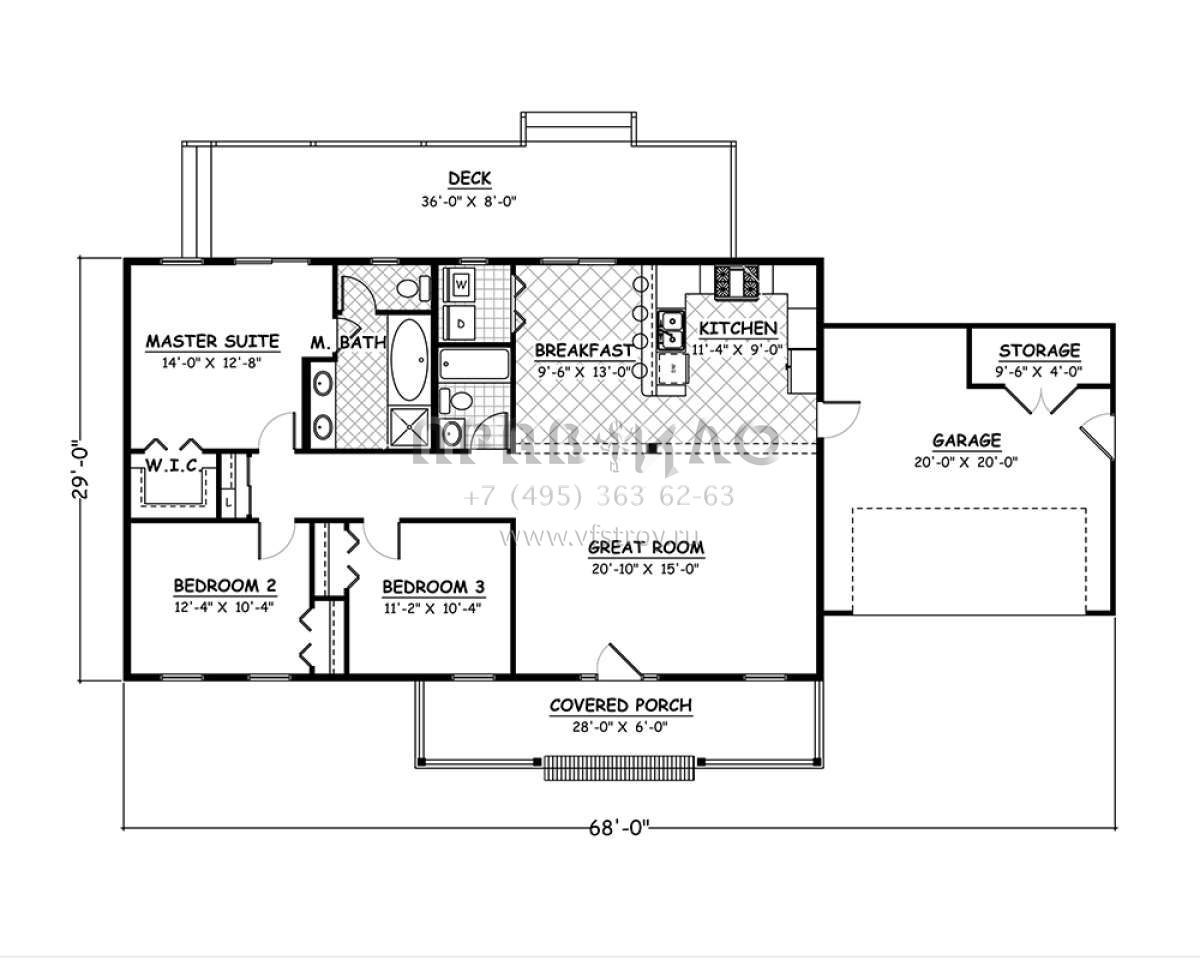 Проект одноэтажного дома с гаражом на две машины в стиле Ранчо S5-129 (526-00029)