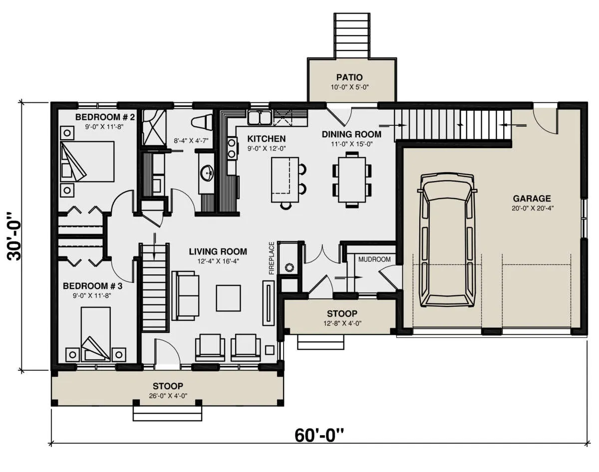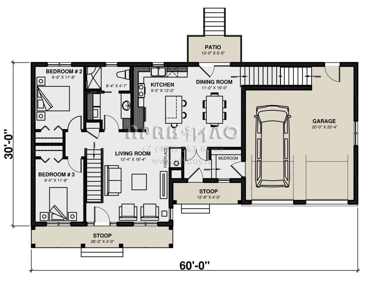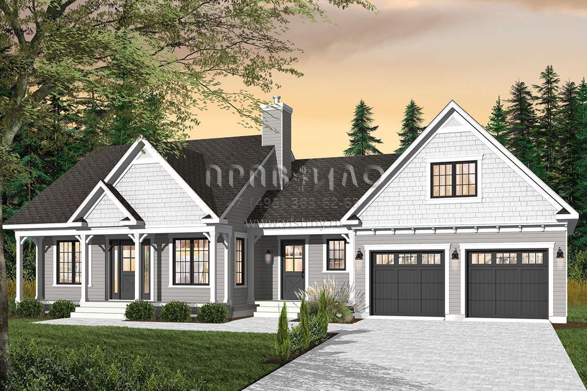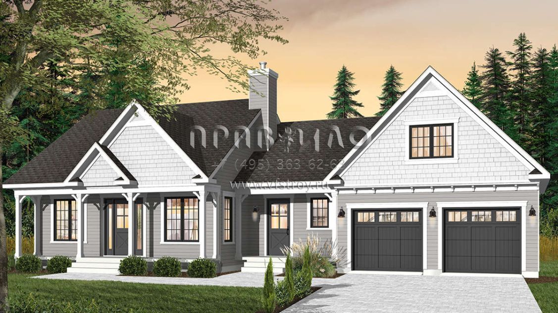 Проект двухэтажного дома с гаражом на две машины в стиле Ранчо S5-130 (034-00802)