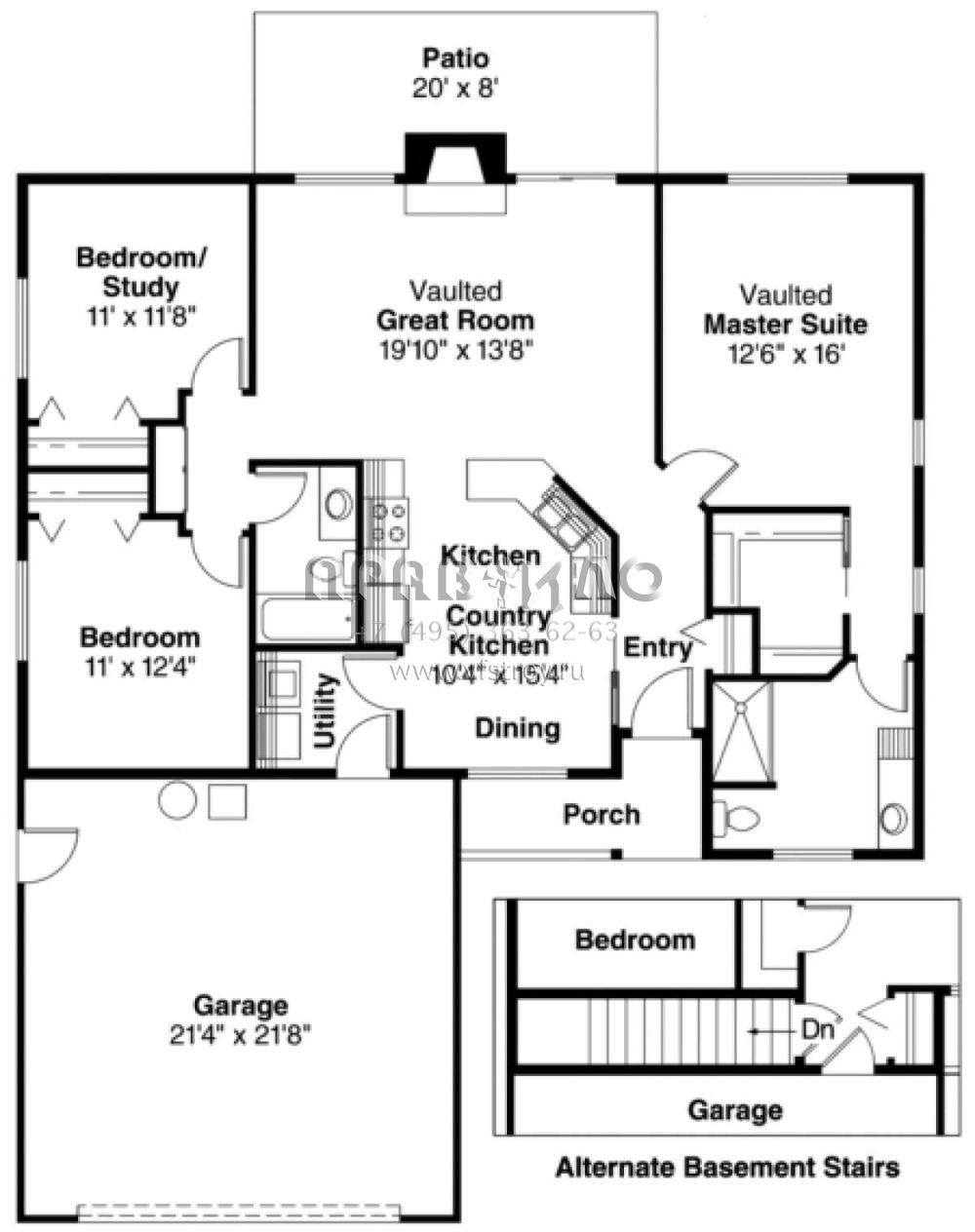 Проект одноэтажного дома с гаражом на две машины в стиле Ранчо S5-130 (035-00238)