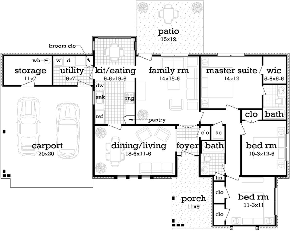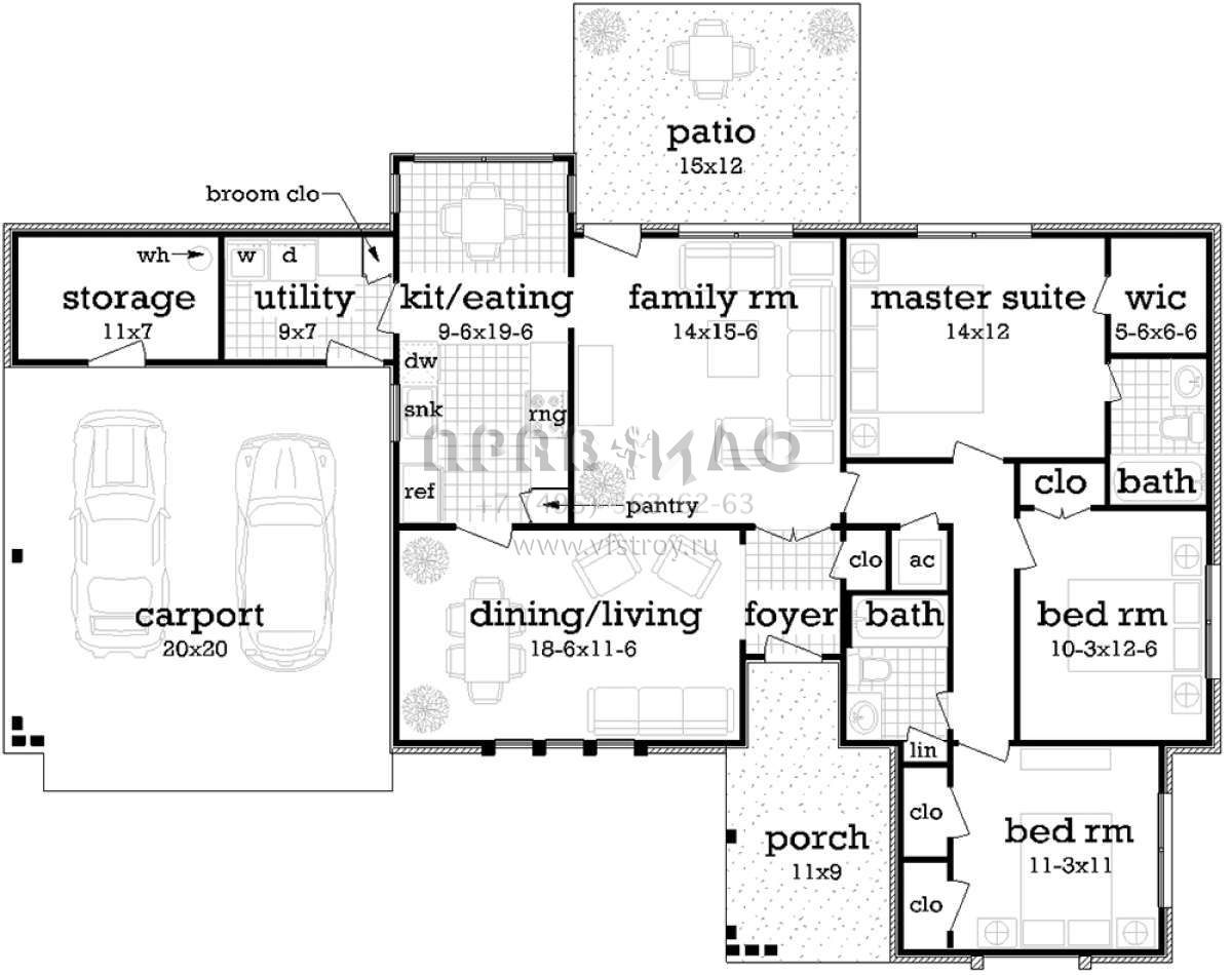 Проект одноэтажного дома без гаража в стиле Ранчо S5-130 (048-00263)