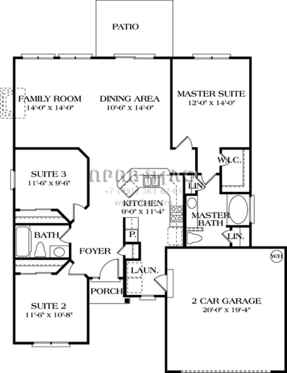 Проект одноэтажного дома с гаражом на одну машину в стиле Ранчо S5-130 (3323-00013)
