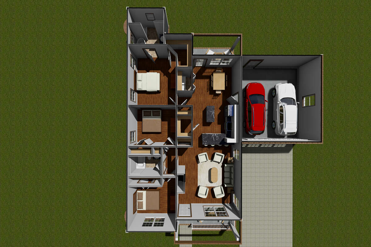 Проект одноэтажного дома с гаражом на две машины в американском стиле S5-130 (4848-00019)