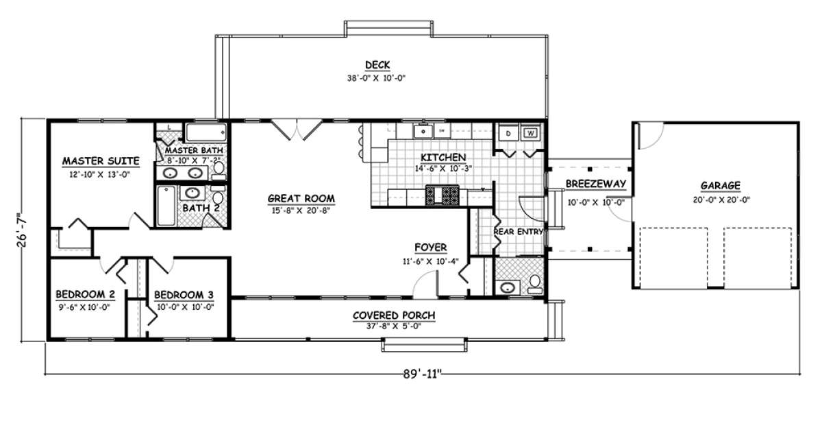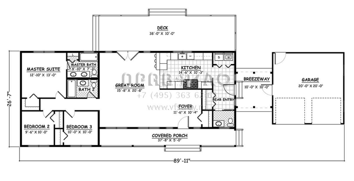 Проект одноэтажного дома с гаражом на две машины в стиле Ранчо S5-130 (526-00050)
