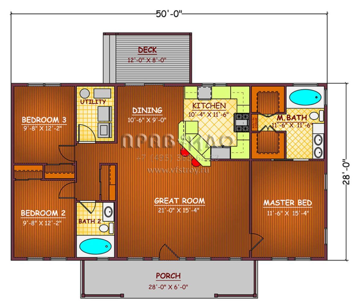 Проект одноэтажного дома без гаража в стиле Ранчо S5-130 (526-00051)