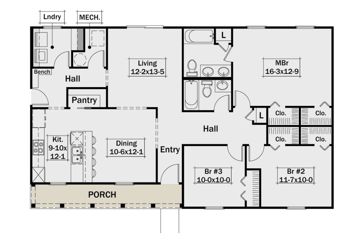 Проект одноэтажного дома без гаража в стиле Ранчо S5-130 (5633-00428)
