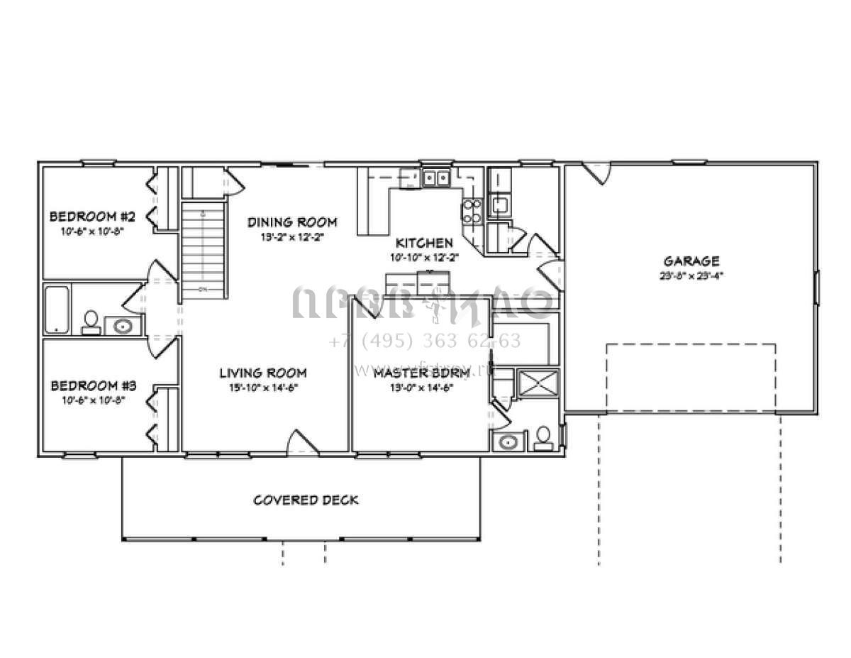 Проект одноэтажного дома с гаражом на две машины в стиле Ранчо S5-130 (849-00024)