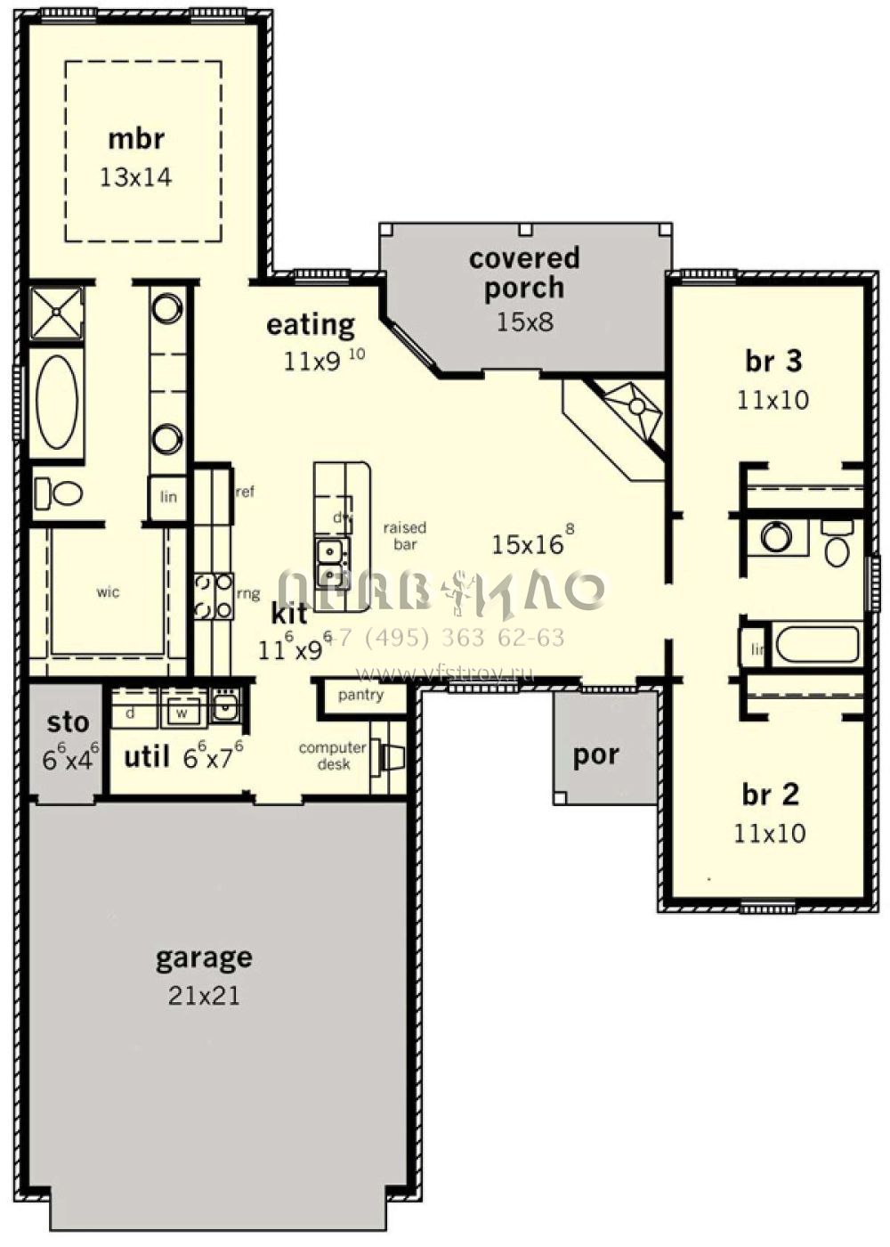 Проект одноэтажного дома с гаражом на две машины в английском стиле S5-130 (9035-00053)