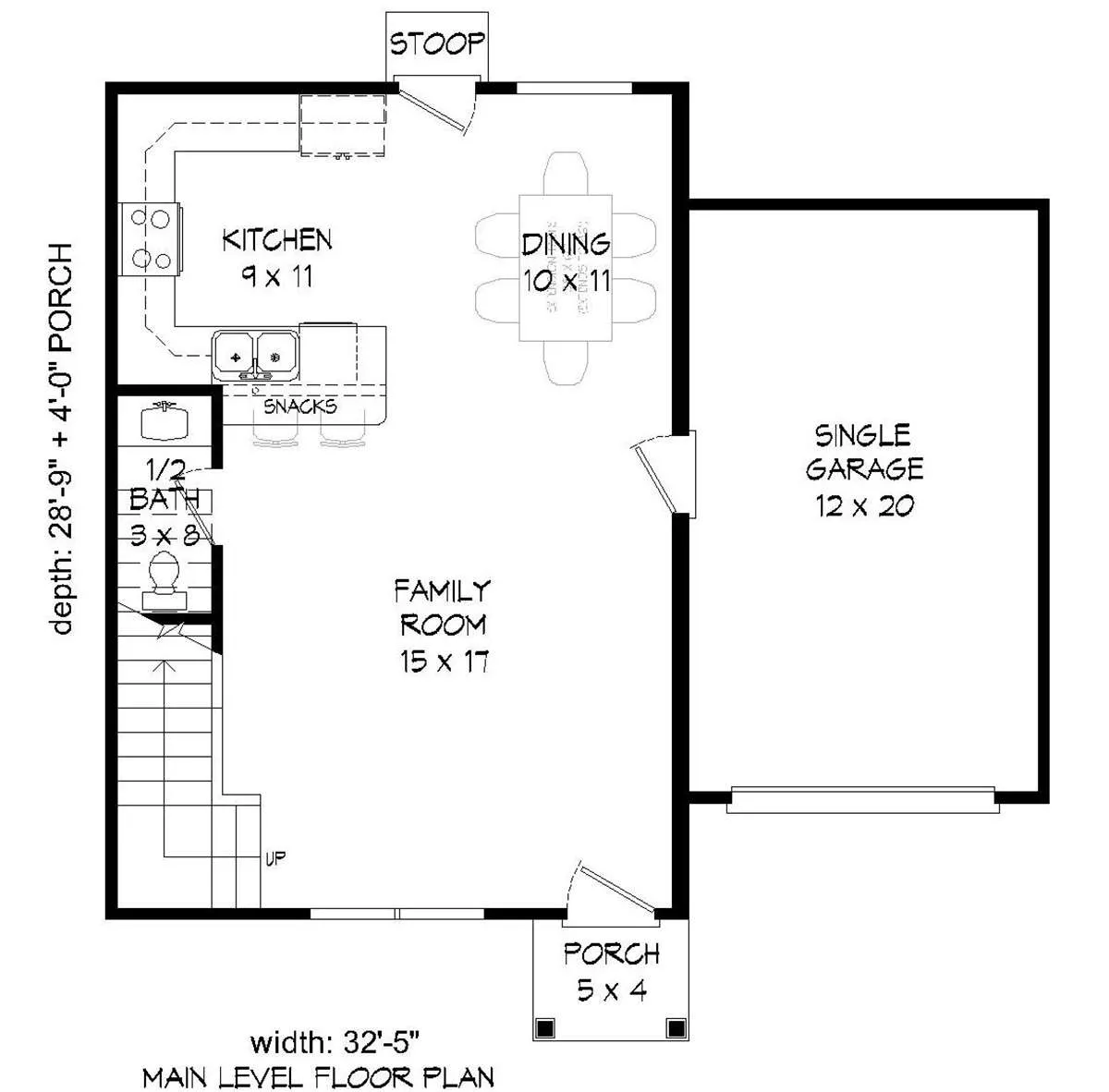 Проект двухэтажного дома с гаражом на одну машину в стиле Ранчо S5-130 (940-00148)