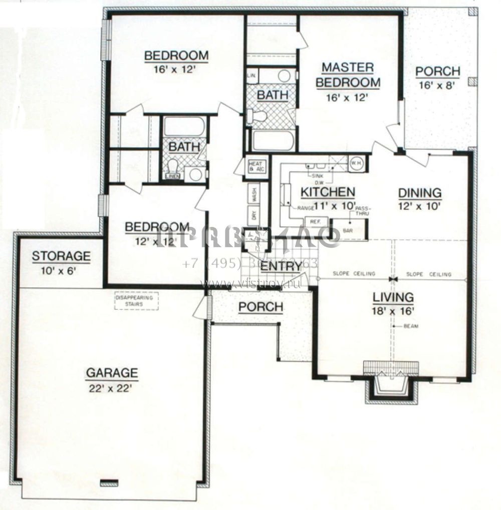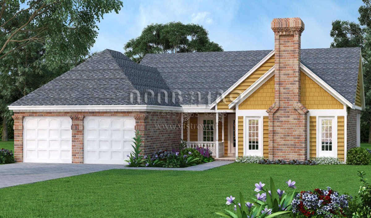 Проект одноэтажного дома с гаражом на две машины в стиле Ранчо S5-131 (048-00248)