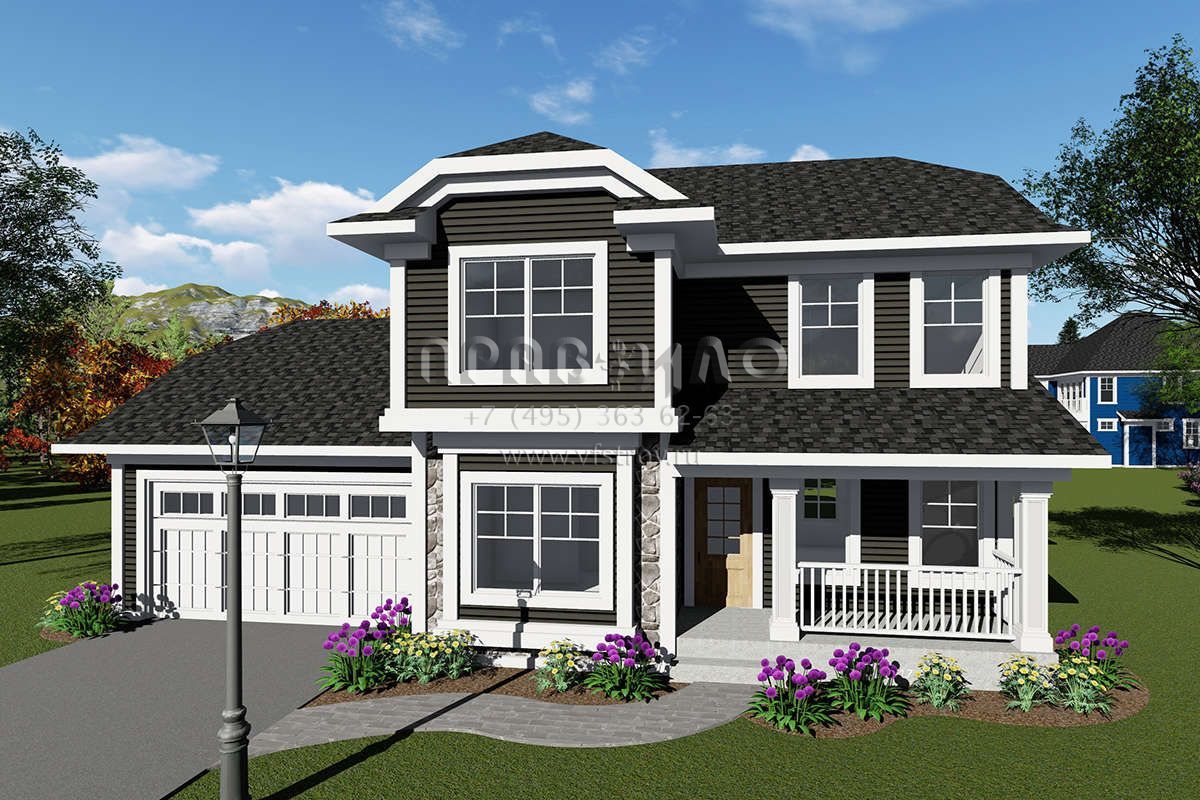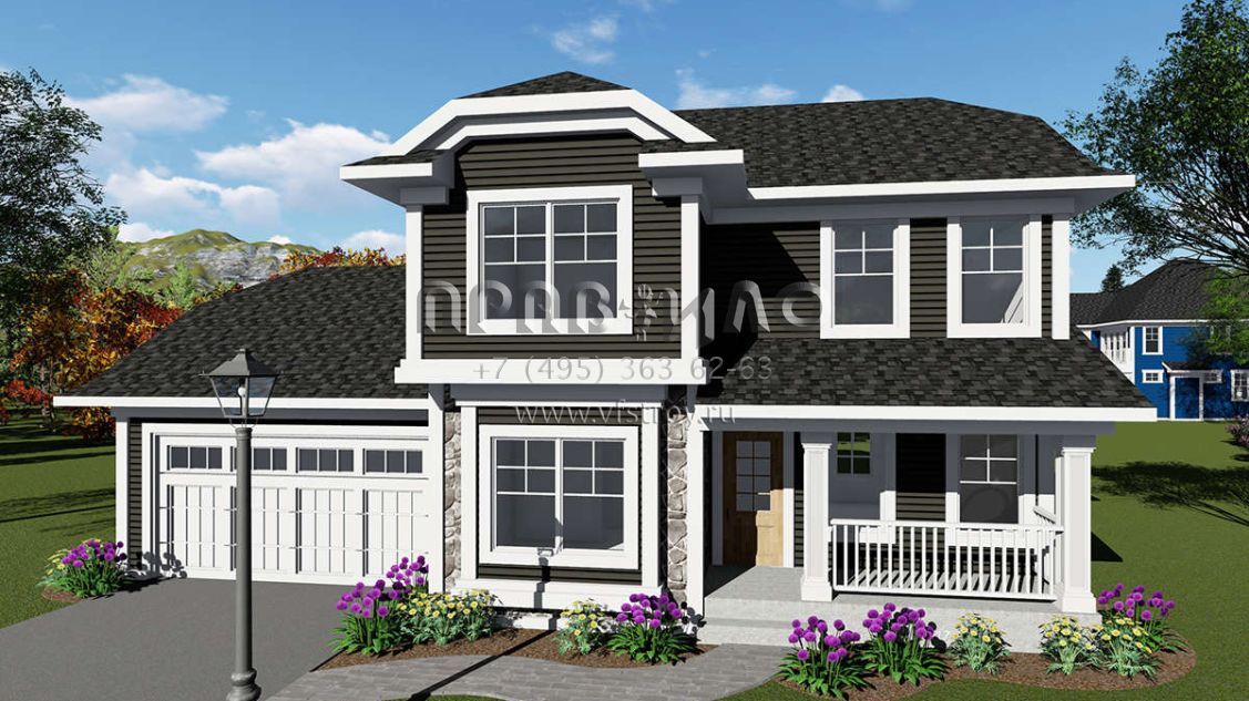 Проект двухэтажного дома с гаражом на две машины в американском стиле S5-131 (1020-00022)