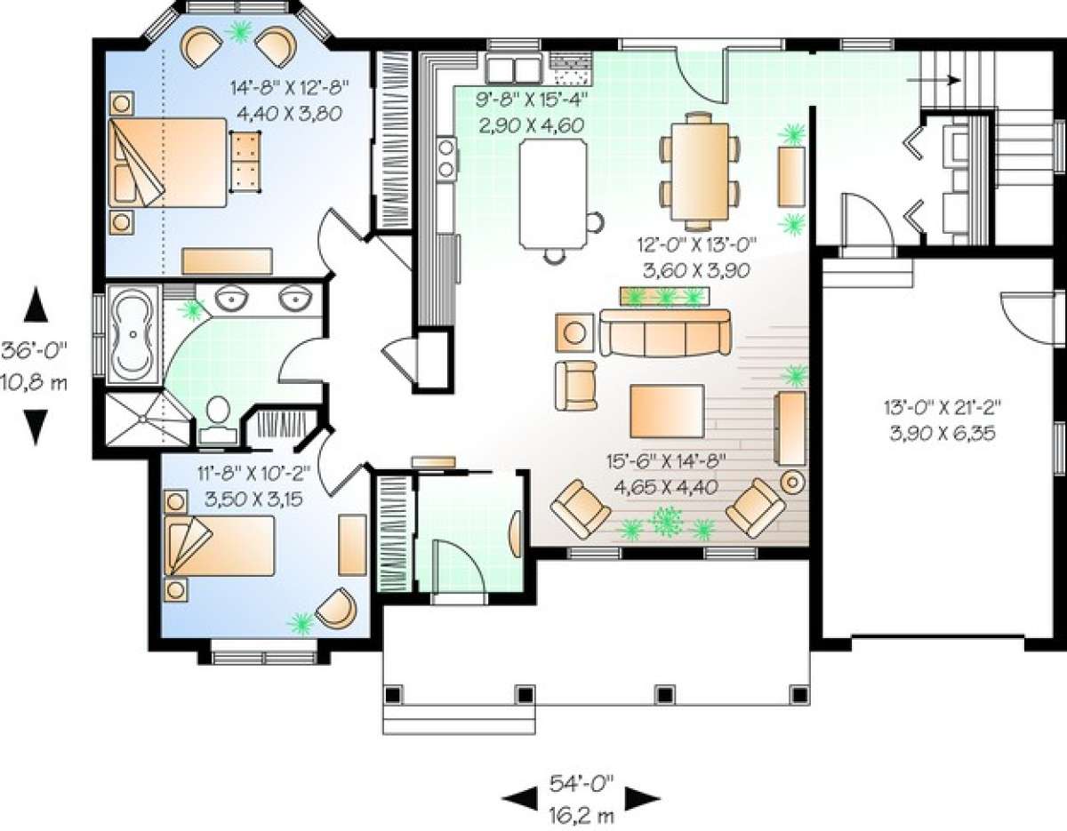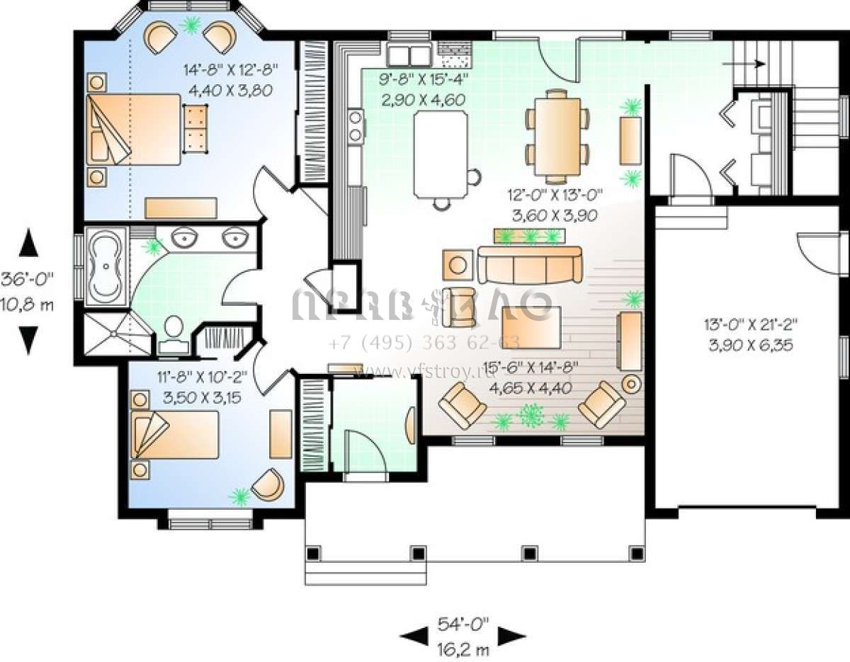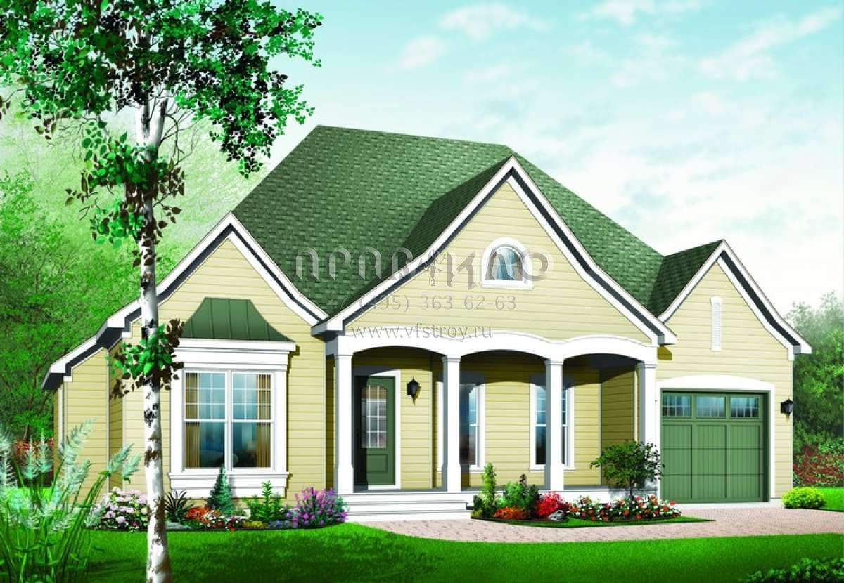 Проект одноэтажного дома с гаражом на одну машину в стиле Ранчо S5-132 (034-00646)